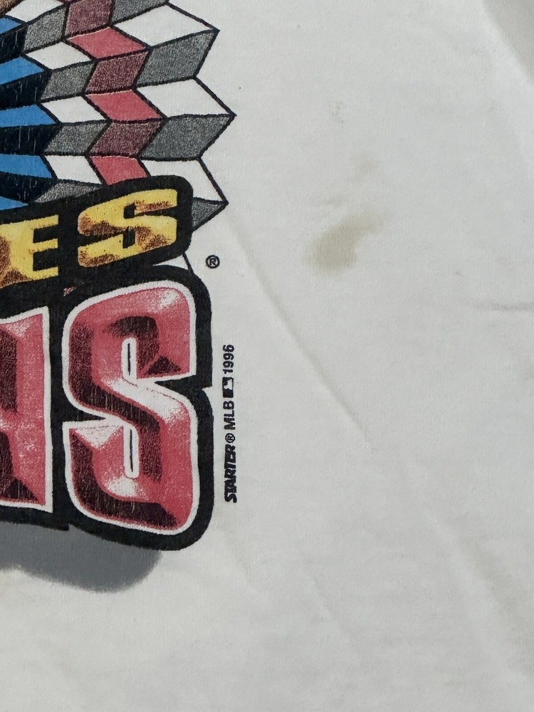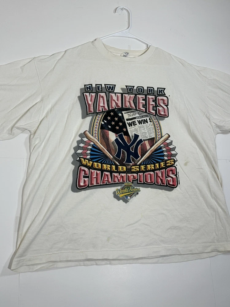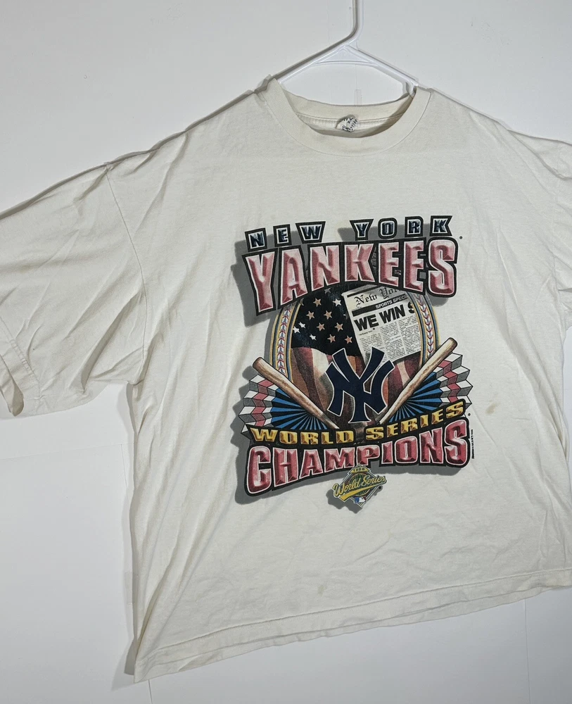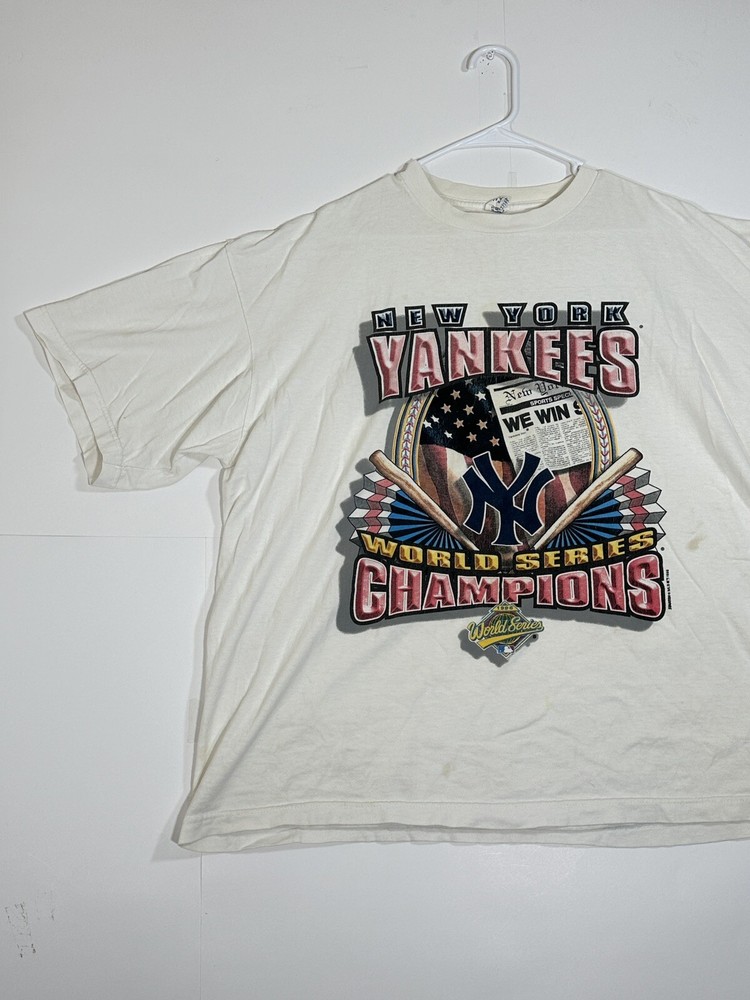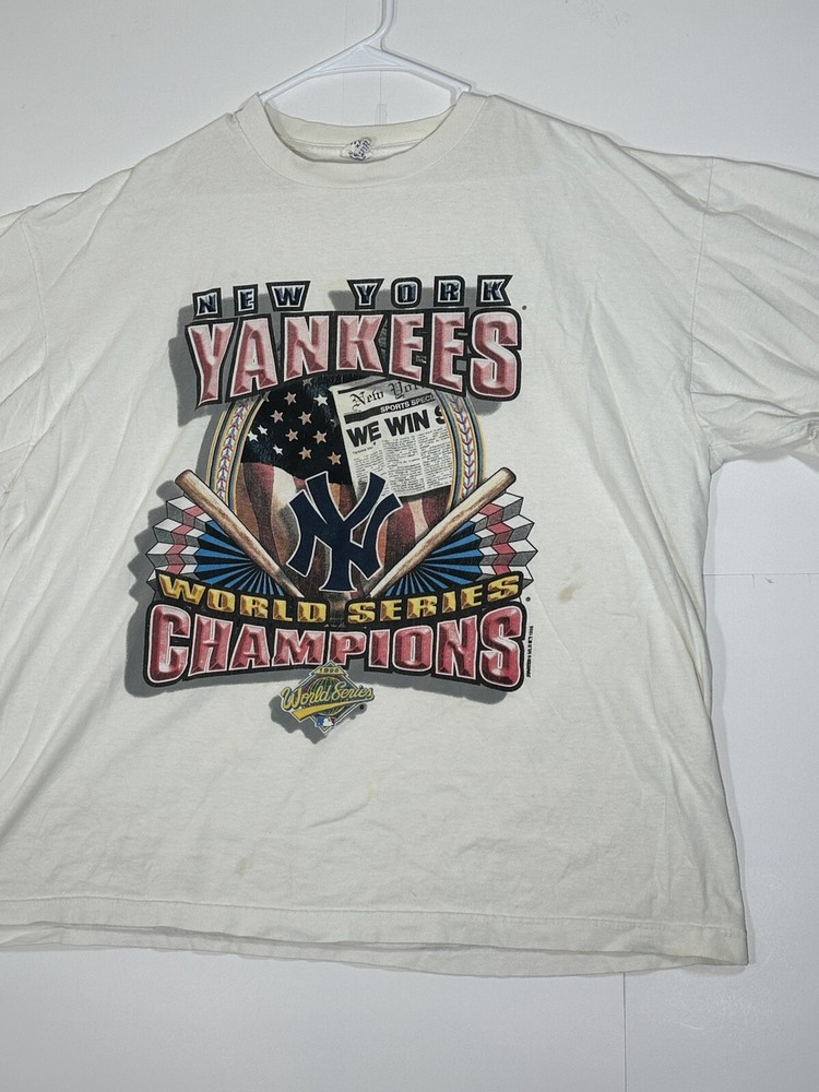 Vintage 1996 New York Yankees World Series Men's Champions Starter T-Shirt Size XL Kinda decent - to - okay condition overall - see ALL photos very closely Shirt has heavy discoloration stains/ fade throughout both sides - around collar - little stains/marks throughout front side around graphic couple little spots - back side has stain spot too - see ALL photos very closely for condition Will ship with care