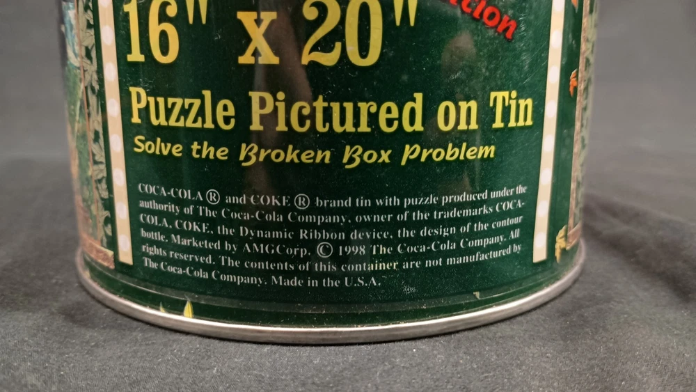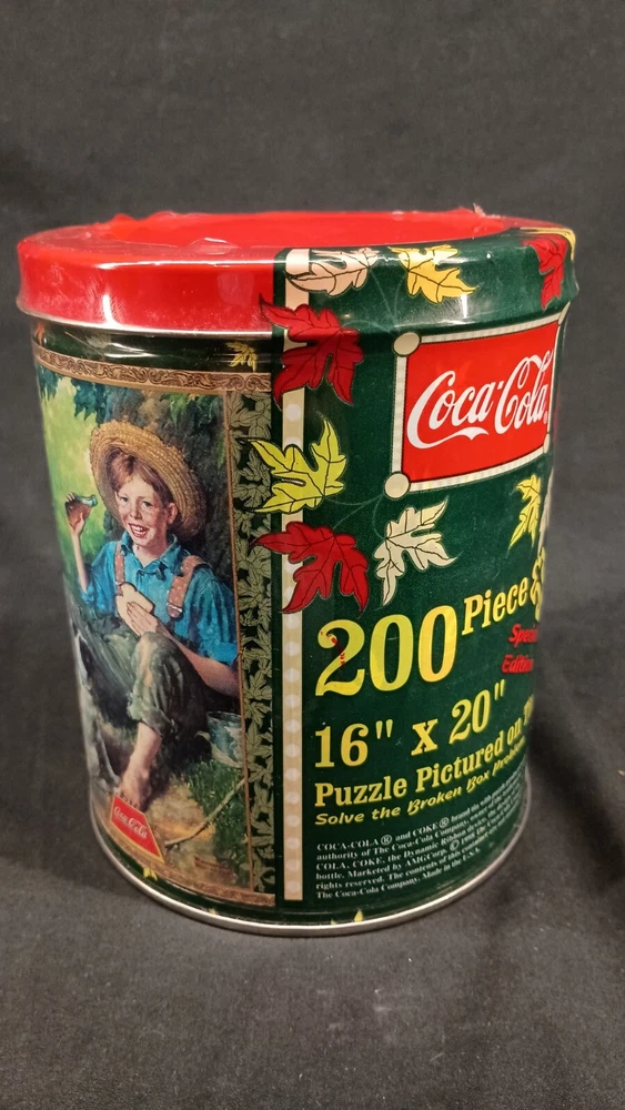 This vintage 1998 COCA-COLA 200 PIECE PUZZLE is a great addition to any collection. The puzzle is in a round tin and is factory sealed. It features a colorful and eye-catching design that showcases the iconic soda brand. The puzzle was created in the United States and is an original piece. It is perfect for puzzle enthusiasts and collectors alike. The theme of the puzzle is soda, and it is a type of advertising puzzle that is sure to impress. This item is a must-have for any Coca-Cola fan or puzzle collector. Thank you for visiting my listing today and thank you for your interest in this item! My goal is to have a pleasant transaction resulting in a satisfied customer. I hope any transaction between us leaves you with a feeling of confidence knowing you can trust me and the items I offer here. *Most if not all my listings are set to accept offers. Feel free to send an offer and I will be happy to consider it!! *Please contact me with any questions or concerns and I will be happy to help. *Always examine the photos carefully, and if in doubt, email me with any questions you may have. *Please note that condition statements are offered as a guide only. They will always be somewhat subjective and reflect our opinion, which may not necessarily agree with someone else's opinion. PLEASE READ: I aim to please and I want my buyers to have a positive transaction with me. If you have questions, concerns, or special requests related to any of my items I hope you will contact me so we can work them out to your satisfaction. I sell my items to give you a great item at a decent price while making a little profit at the same time. If you feel the item you are interested in is too pricey do not hesitate to send me a fair offer and I will consider it. My goal is to satisfy your needs and mine so both parties can benefit. SHIPPING: If you prefer a different shipping method or company please contact me and I will do all I can to make that happen. If you have concerns or requests about the packaging of your item contact me and I will do all I can to accommodate them. Shipping costs are based on location in each state or country, the costs always differ. After I have received your payment I will ship your item out within 3 business days or less excluding weekends and holidays. BEFORE PURCHASING & BIDDING: **Please see all the pictures. I do not have great photography skills but I try to get the most accurate photos I can. If you are unsure about something you see in a photo contact me so I can do what I am able to answer your concern about the item. **I cannot stress enough that if you have any questions or concerns please contact me before purchasing and bidding. Communication can solve so much. **As a customer myself, I understand the meaning of customer satisfaction and my goal is to have nothing but satisfied customers. If you are not unsatisfied with your purchase I ask that you please contact me so I can take care of your issue. My goal is for you to be 100% satisfied. INTERNATIONAL BUYERS WELCOMED - PLEASE NOTE: I welcome International buyers! Please be aware that any custom/duties/taxes that the parcel might incur once it is out of the USA are the responsibility of the buyer. Please check with your country's customs office to determine what these additional costs will be prior to bidding or buying. Please refer to the eBay Site Map for more information if needed.