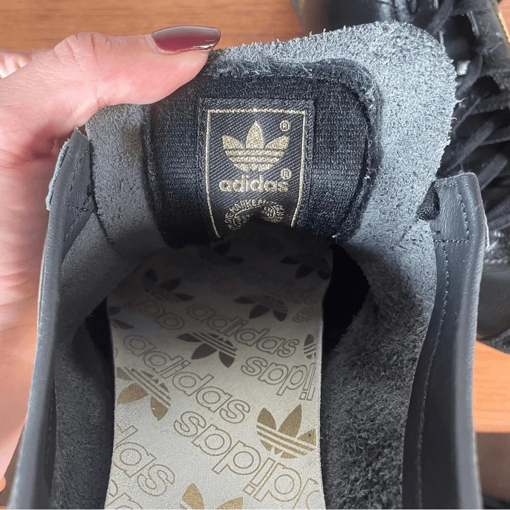 Black adidas antelope sneaker 2004 black with white and gold stripe. Relatively good condition, insoles are coming away as you can see but soles are in good shape. Great classic shoe rare and hard to find.