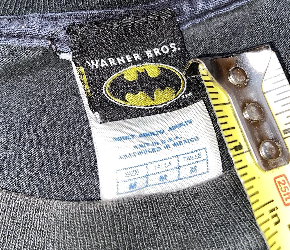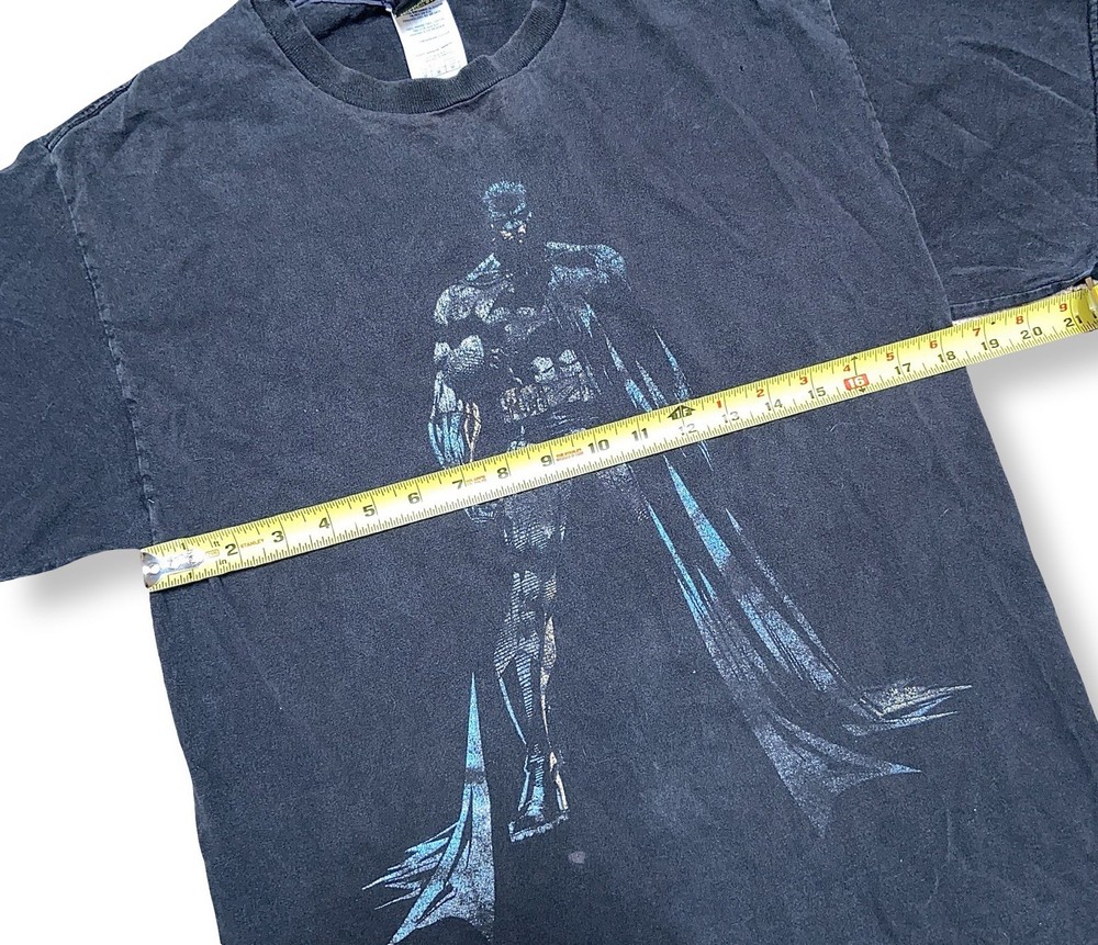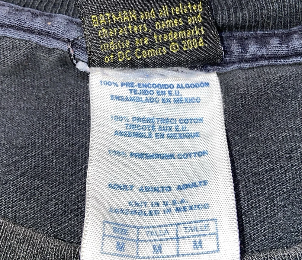 Vintage 2004 Batman DC Comics Graphic T-Shirt – Black Men’s Size Medium (see photos for exact measurements) Official Warner Bros / DC Comics licensed Batman graphic Dated 2004 on tag 100% cotton with a naturally faded, broken-in vintage wash Early Y2K era comic graphic tee Good vintage condition with graphic wear and fading consistent with age, fits slightly small Ships USPS Ground Advantage Feel free to message us anytime! MisterGarment