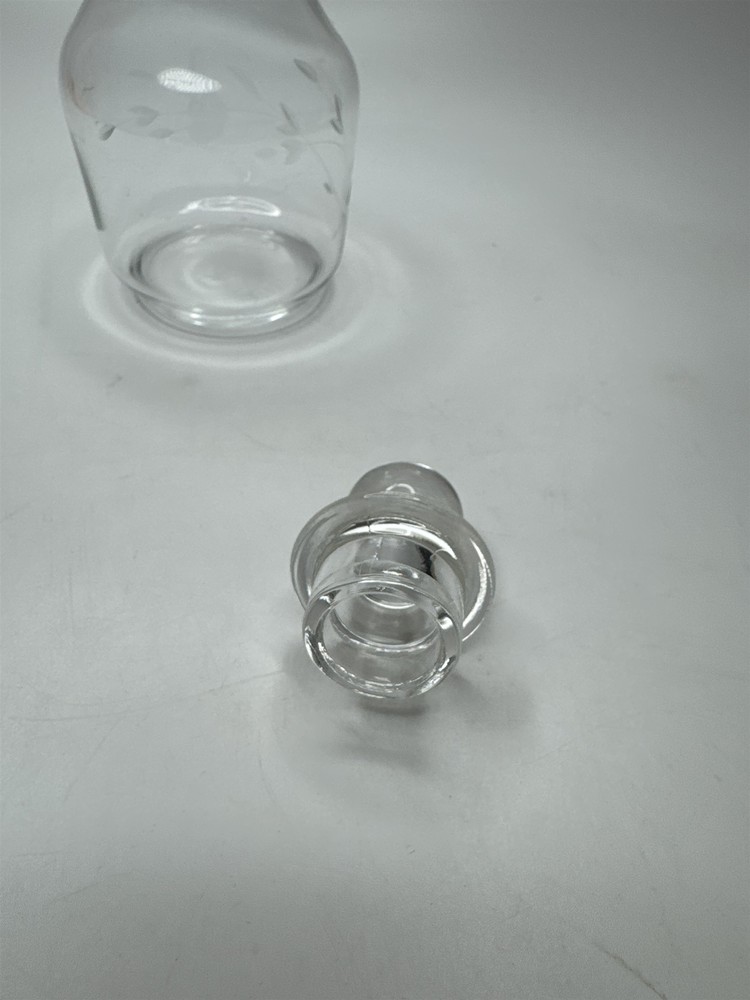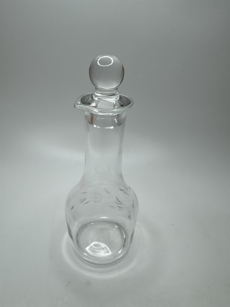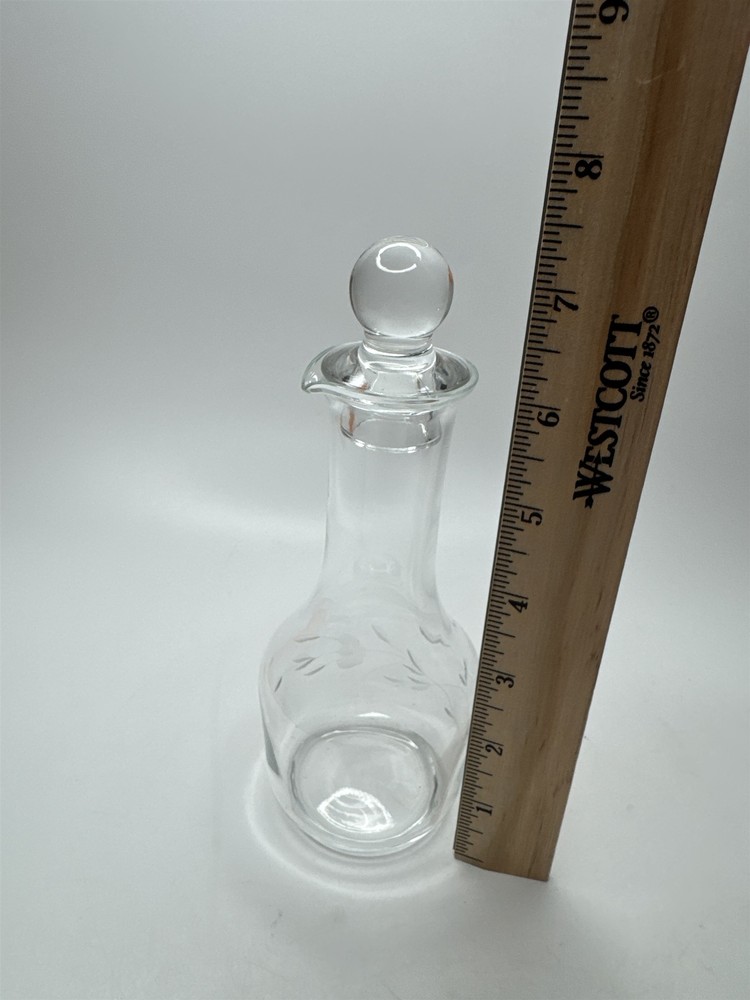 Vintage 6-Inch Floral Etched Clear Glass Decanter