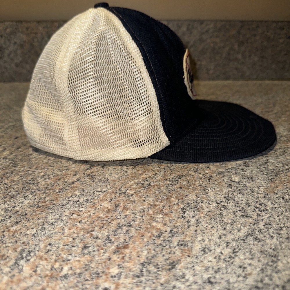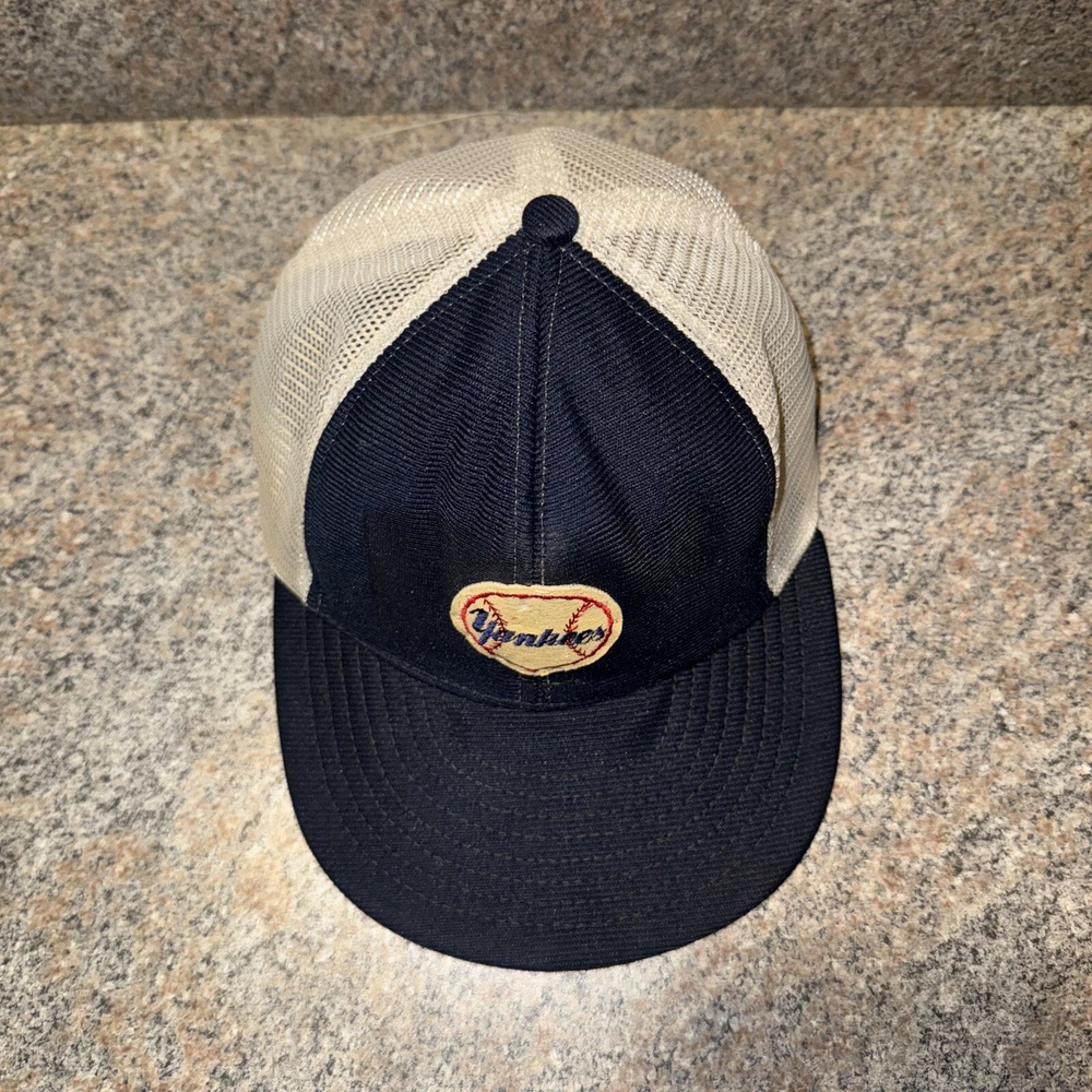 This cap is from the early 1970s came from an estate sale where the family had children that grew up in the late 60s early 70s and this was their sons cap. Looks like the patch was hand sewn onto the cap which is really cool and makes it even more rare. The cap is really in good shape, specially for its age. Quite remarkable how well preserved it was. The lady claimed that she kept it in a Ziploc bag all these years after visiting Yankee Stadium in the 1970s Show off your love for the New York Yankees with this vintage ABCO mesh trucker snapback hat in navy blue. This classic cap features the iconic team logo and is perfect for any fan of Major League Baseball. Made in the United States by Sportcap, this one-size hat is designed for men and is perfect for regular season games. The blue color of the hat complements any outfit, making it a versatile addition to your sports memorabilia collection. This cap is a must-have for any baseball fan and is perfect for game day or everyday wear.