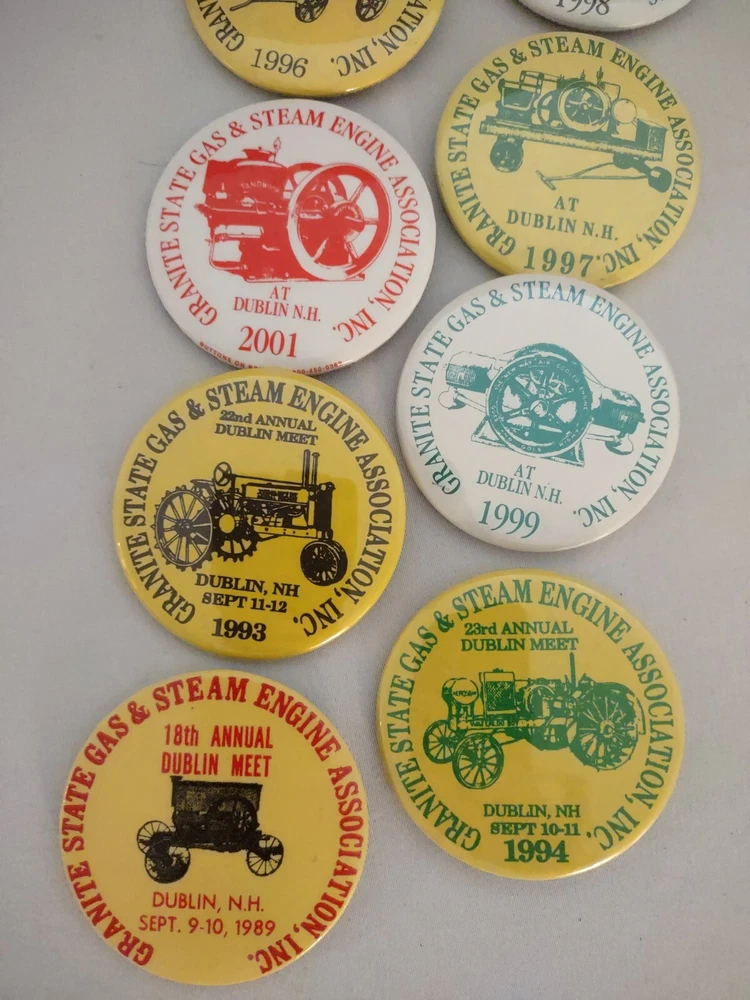 This vintage 8pc Granite State Antique Gas & Steam Engine Show Buttons from New Hampshire is a great addition to any collection. With its unique design and historical significance, it is sure to impress any collector of pinbacks and lunchboxes. The buttons were manufactured in the United States, adding to their authenticity and value. The theme of the buttons is Clubs & Memberships, making it a great item for those who are interested in the history of clubs and memberships in the United States. This item is perfect for collectors who appreciate unique and historical items, and is sure to be a conversation starter.