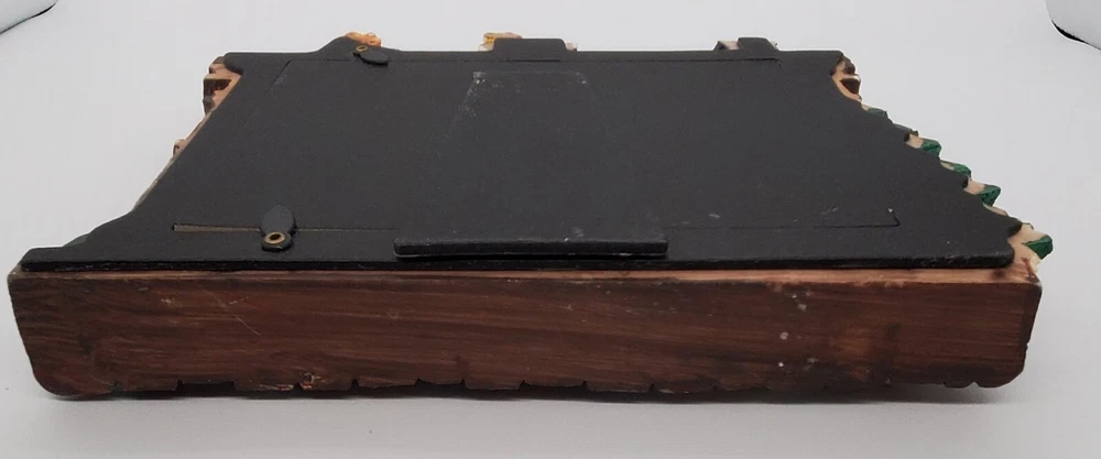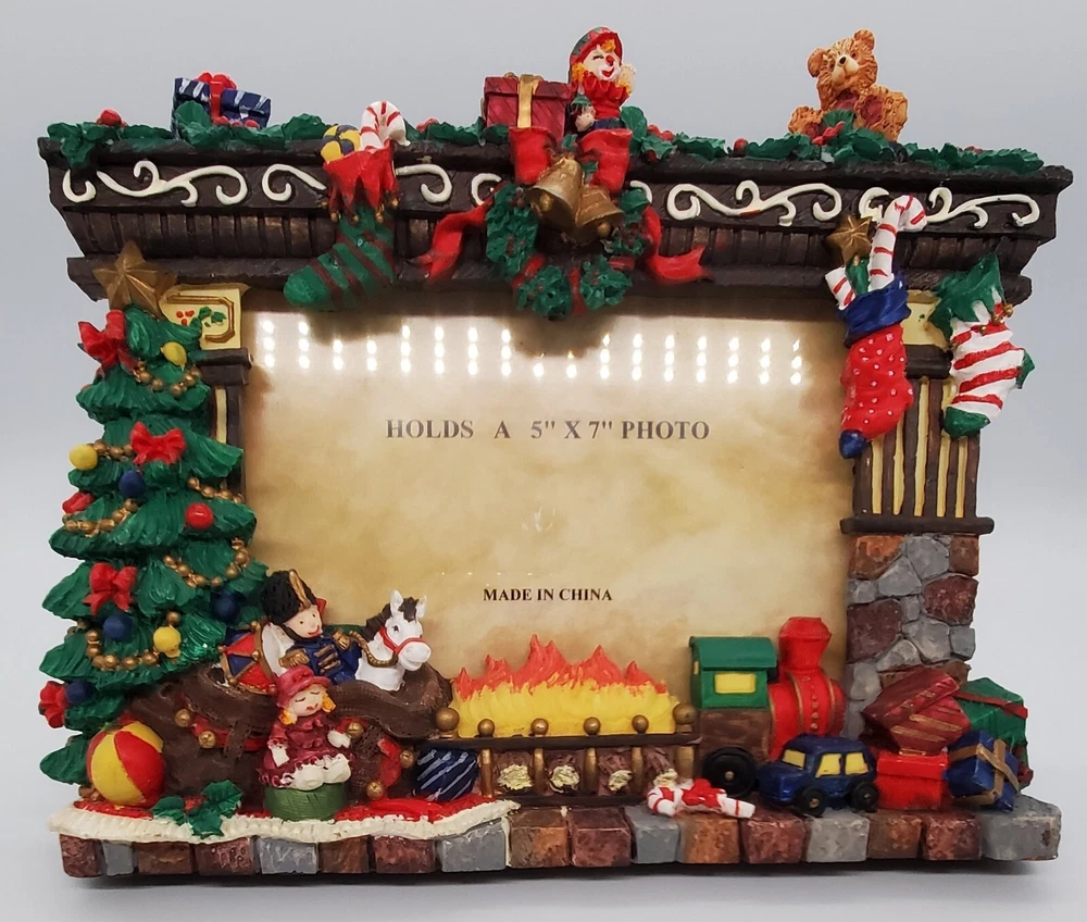 This Grandeur Noel mantel and fireplace photo frame is the perfect addition to your Christmas decor. Made of durable resin material, this frame features a festive design with mantel and fireplace elements, making it a great way to display your favorite holiday memories. The multicolor frame is suitable for any occasion and will add a touch of nostalgia to your home. This collectible item is manufactured in China and is not handmade or modified. It is a great gift for anyone who loves vintage Christmas decor. Measurements are approximately 10.25 inches length by 8.25 inches in height by 1.50 inches in width and weighs approximately 2 pounds 11 ounces. Pre-owned and in good condition. It does have a chip on two leaves on top of the mantel and some lack of paint here and there. See photos for further details. Please see my other listings.