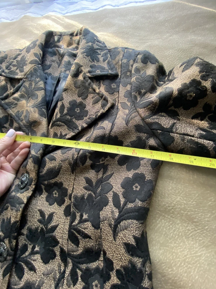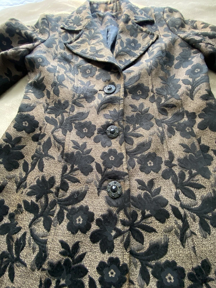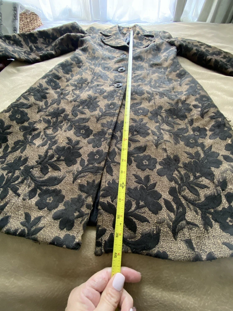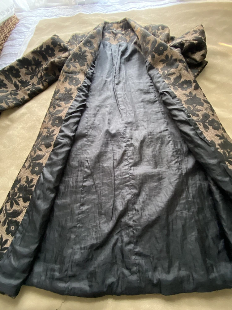 No tag. There is some wear to the fabric which means there are some loose threads but no holes.