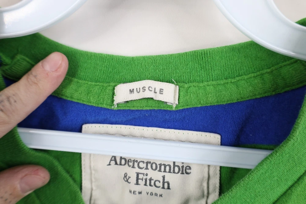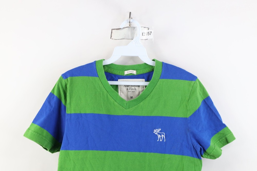 Vintage 90s Y2K Abercrombie & Fitch Mens Medium Striped Color Block T-Shirt Mens T-Shirt Blemishes front, left arm. Collar, arms discolored. Color faded. Pilling Mens size Medium Measurements are: 19 inches underarm to underarm 26 inches top to bottom Multicolor Cotton US Shipping is FREE and part of the Global Shipping Program Check out my other items in my store! I2157