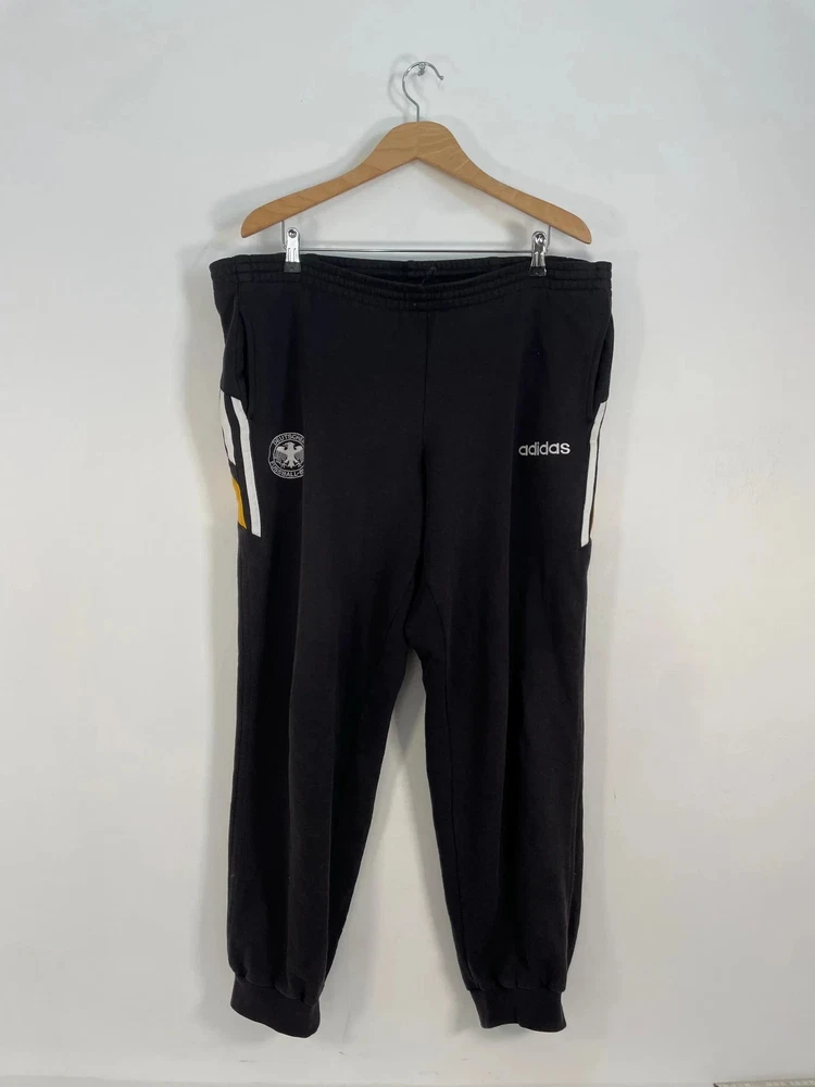 The Vintage 96'/98' Adidas Germany Training Sweatshirt and Pants is a nostalgic piece of fan apparel for soccer enthusiasts. Officially licensed by Adidas, this set features the classic white color and the iconic team logo of the Germany national team. Made for men in size M-L, this sweatshirt and pants combo is perfect for showing support for Team Germany during matches or training sessions. Perfect for fans looking to add a retro feel to their sports memorabilia collection.