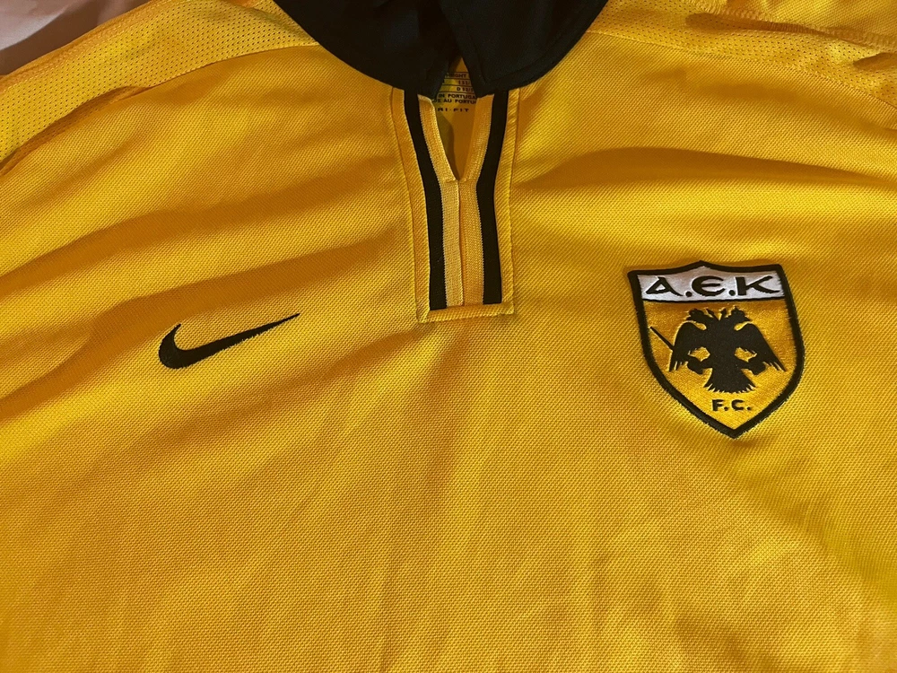 Vintage AEK Athens Jersey Shirt Black Nike Greece Soccer Size L Large 2000-2002