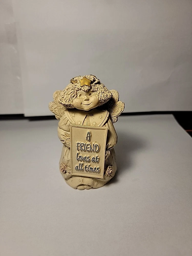 Vintage Abbey Press 4" Resin Angel "A FRIEND LOVES AT ALL TIMES" Figurine. Condition is Used. Shipped with USPS Ground Advantage.