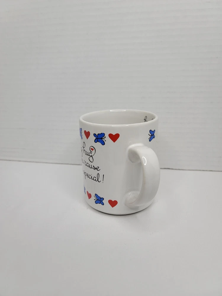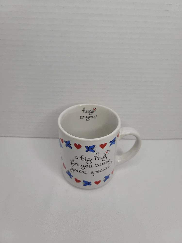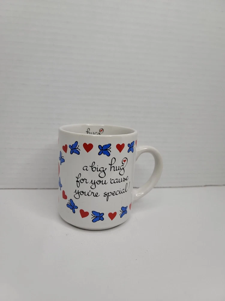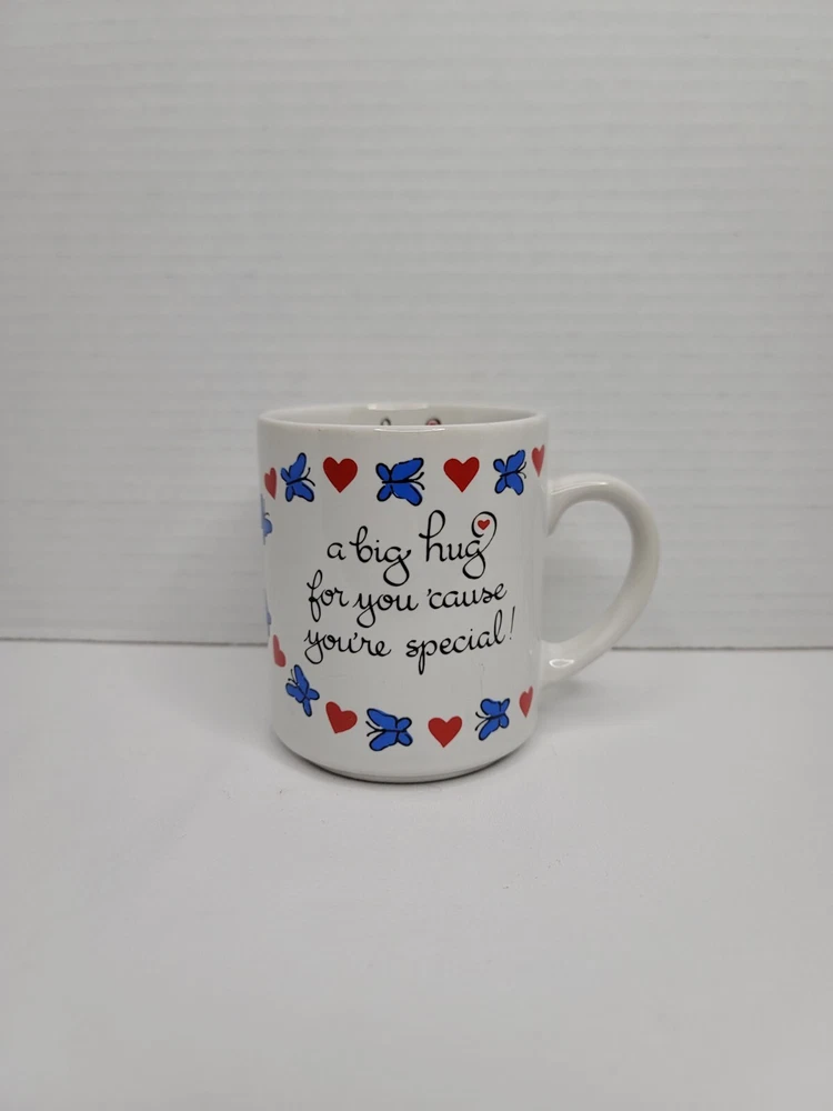 Vintage Abbey Press "A Big Hug For You 'Cause You're Special" Novelty Coffee Mug. This item is in good, original unaltered condition. Some imperfections are possible from the vintage age. No chips or cracks are seen. Please look closely at the pictures and ask questions. Some dust/dirt from storage. Comes as pictured in used, preowned condition, and packed with care.