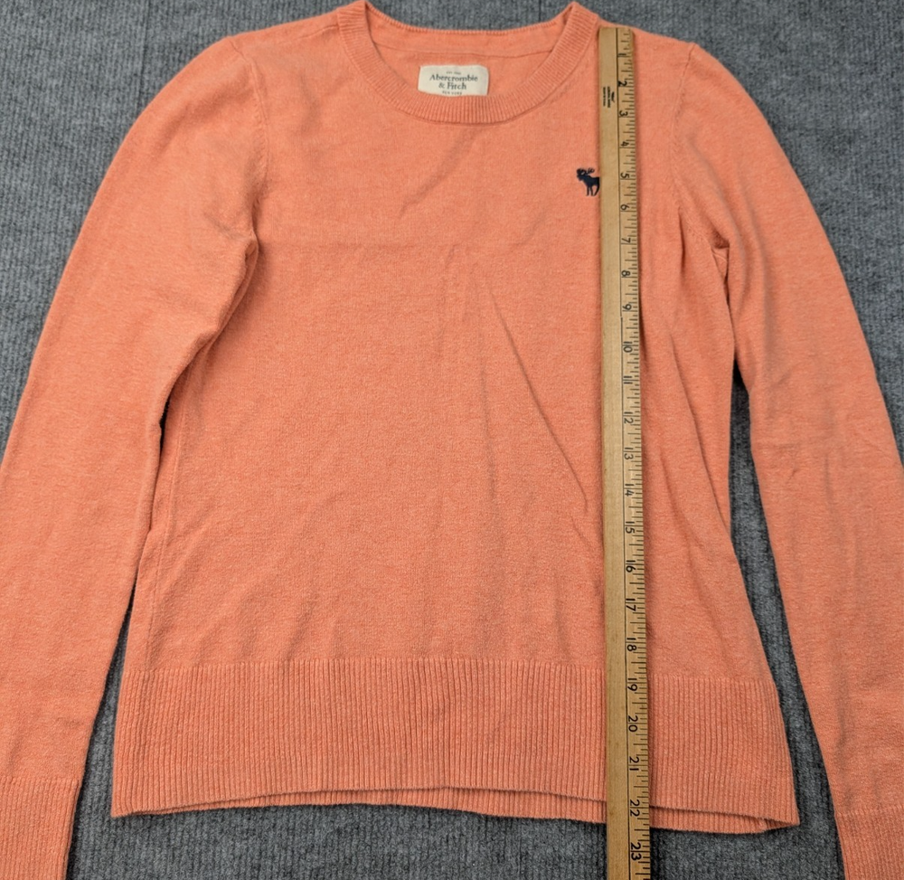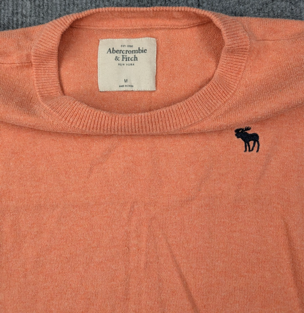 Brand: Abercrombie & Fitch Type: Pullover Sweater Department: Women Size: M Color: Orange / Coral Material: Likely Cotton Blend (Tag not fully visible) Pattern: Solid with Embroidered Logo Sleeve Length: Long Sleeve Neckline: Crew Neck Fit: Classic Fit Features: Ribbed Cuffs & Hem, Embroidered Moose Logo Made in: China Condition: Pre-owned