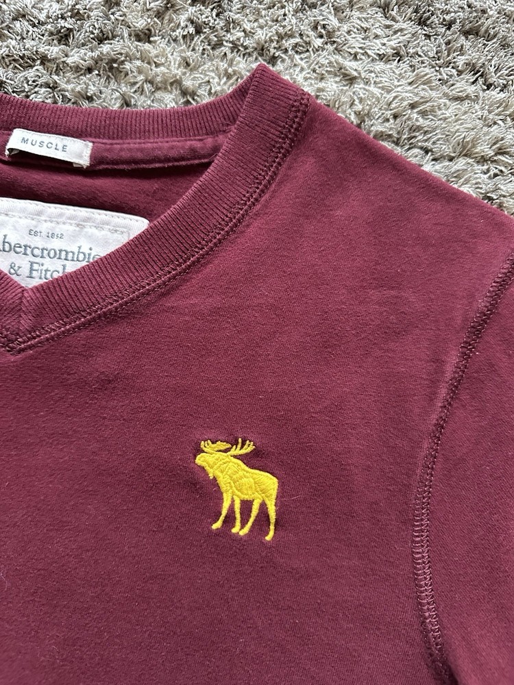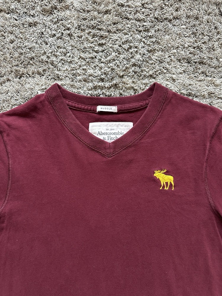 Vintage Abercrombie & Fitch V-Neck Muscle T Shirt Moose Logo Y2k Mens Medium