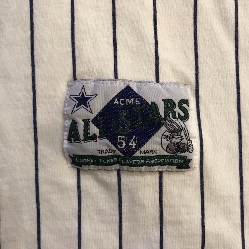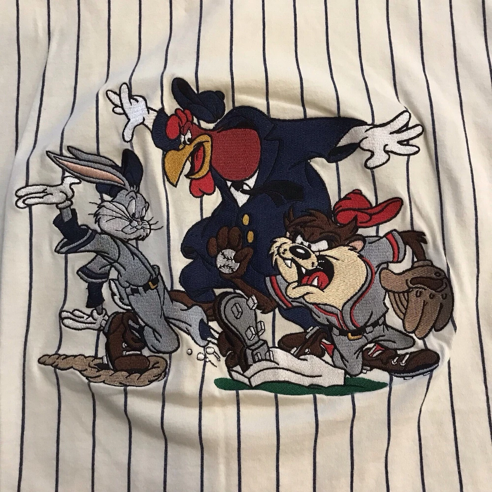 Vintage Acme Co Looney Tunes Baseball Shirt Pinstripes Taz Bugs Foghorn Medium Nice pre-owned condition. See pictures for details and measurements.