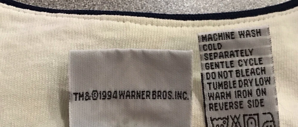 This vintage Looney Tunes baseball shirt is a total gem! The pinstripes and classic Taz, Bugs, and Foghorn graphics give it such a fun retro vibe. Fits true to size, and the fabric is still super soft with no major flaws. Perfect for fans of the classic cartoons—love the nostalgic Acme Co branding too!
