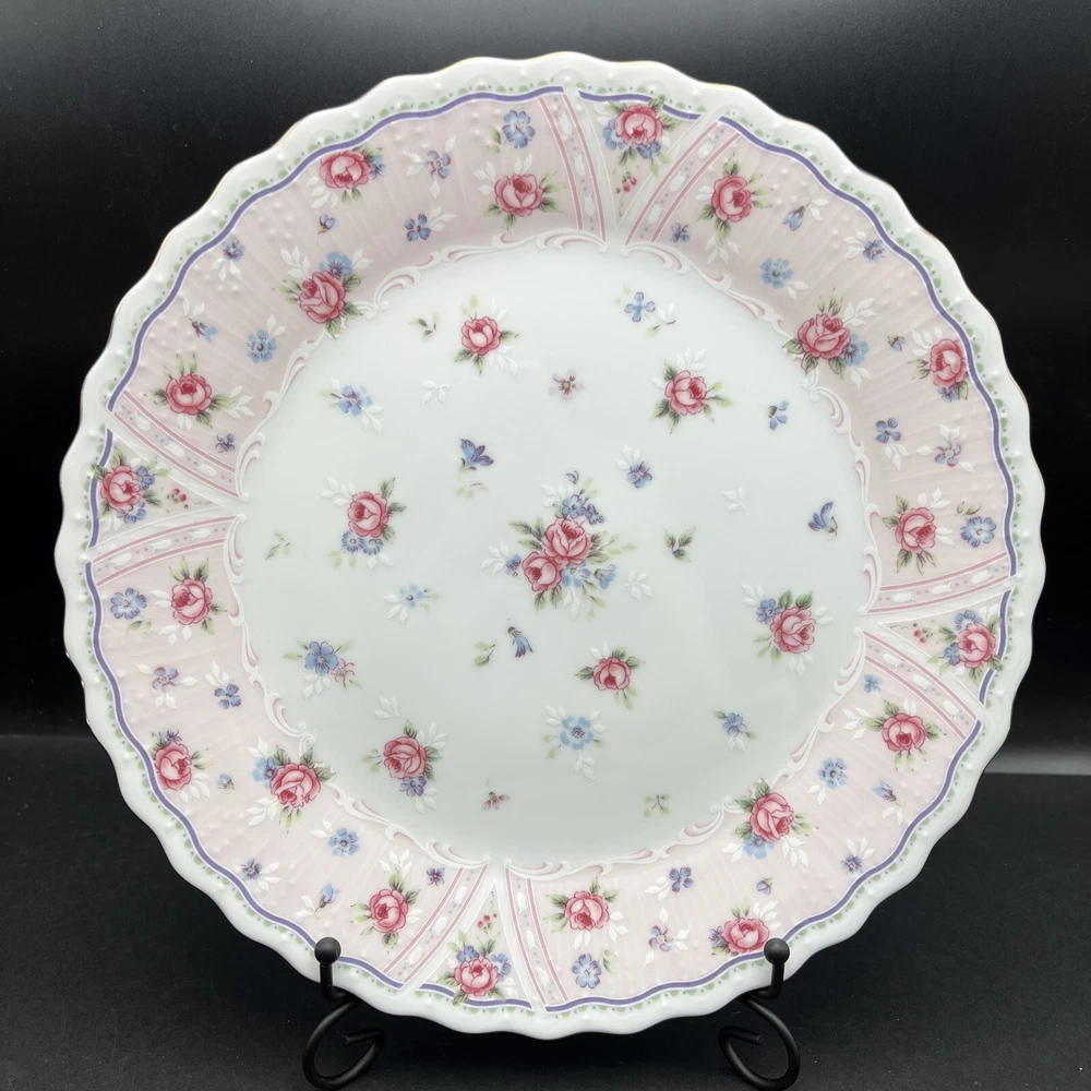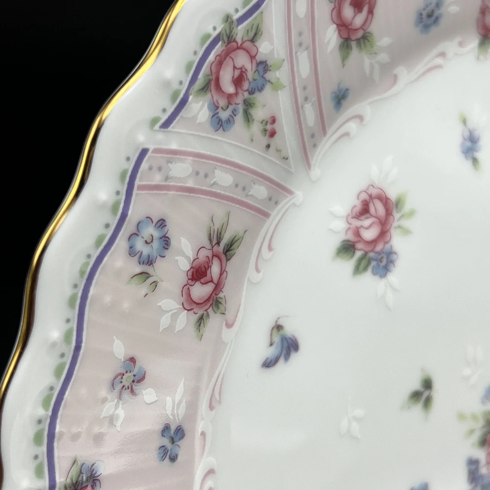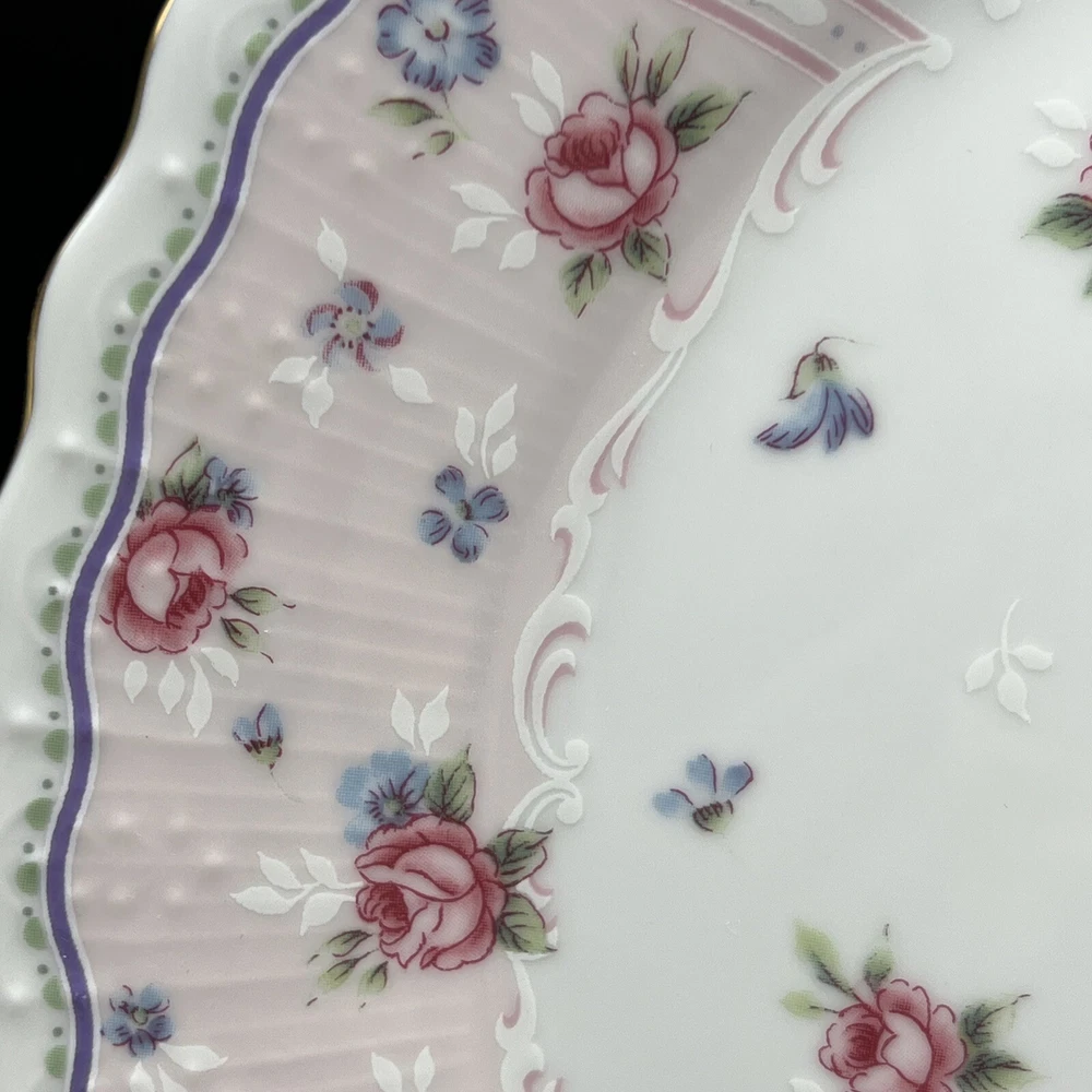 HomeVintage Andrea by Sadek Petit Rose Floral Cake Plate Porcelain Gold Trim 10 "