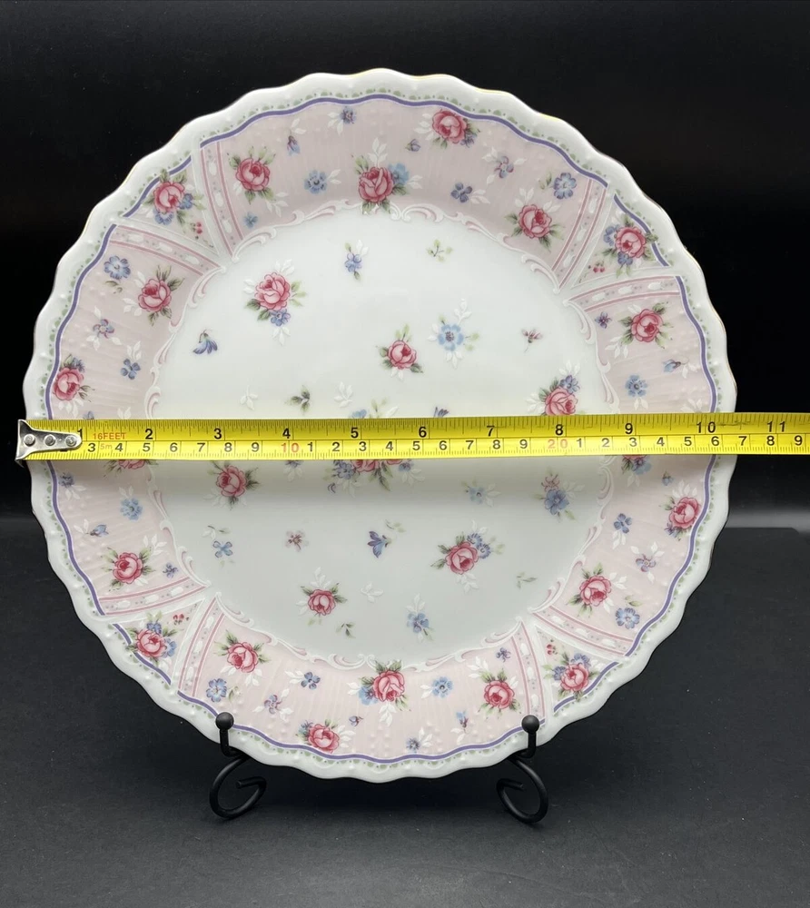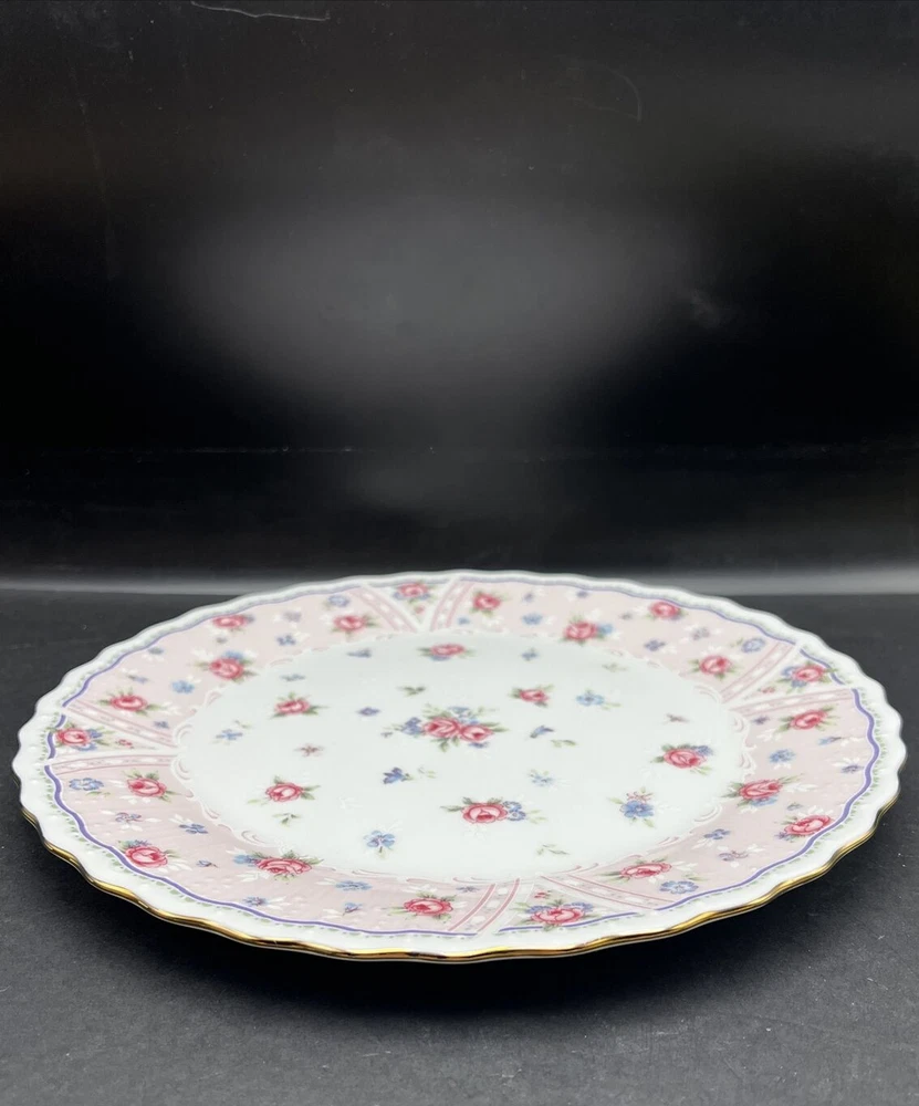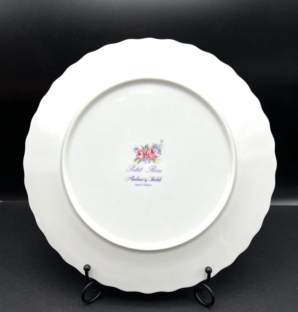 Vintage Andrea by Sadek Petit Rose Floral Cake Plate Porcelain Gold Trim 10 "