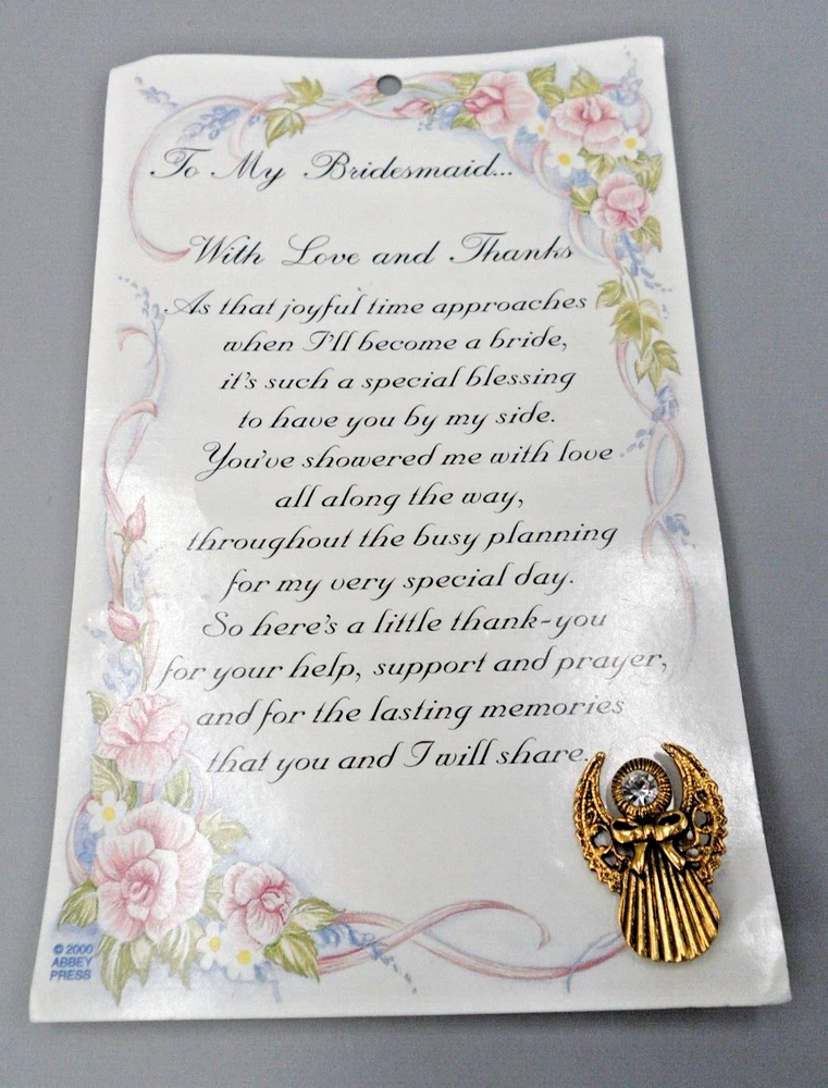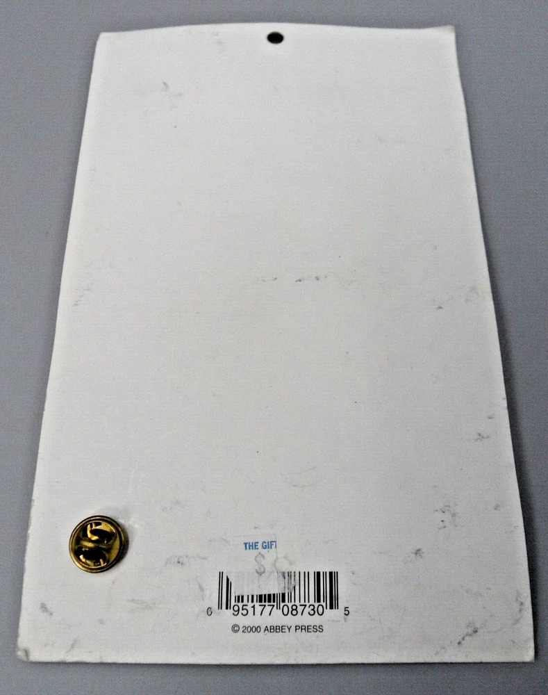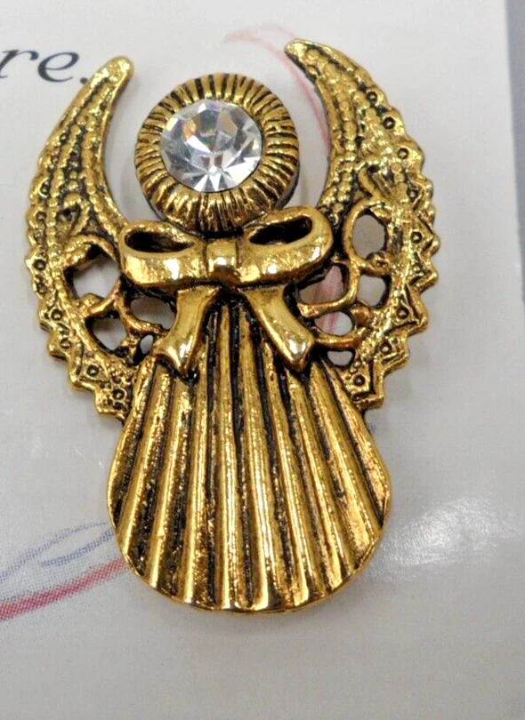 2000 Abbey Press angel clutch pin. Clear glass chaton set in gold tone metal. 1.25 by 7/8". This pin is being stored in my pet and smoke-free studio. It will be protectively wrapped and shipped in a box .
