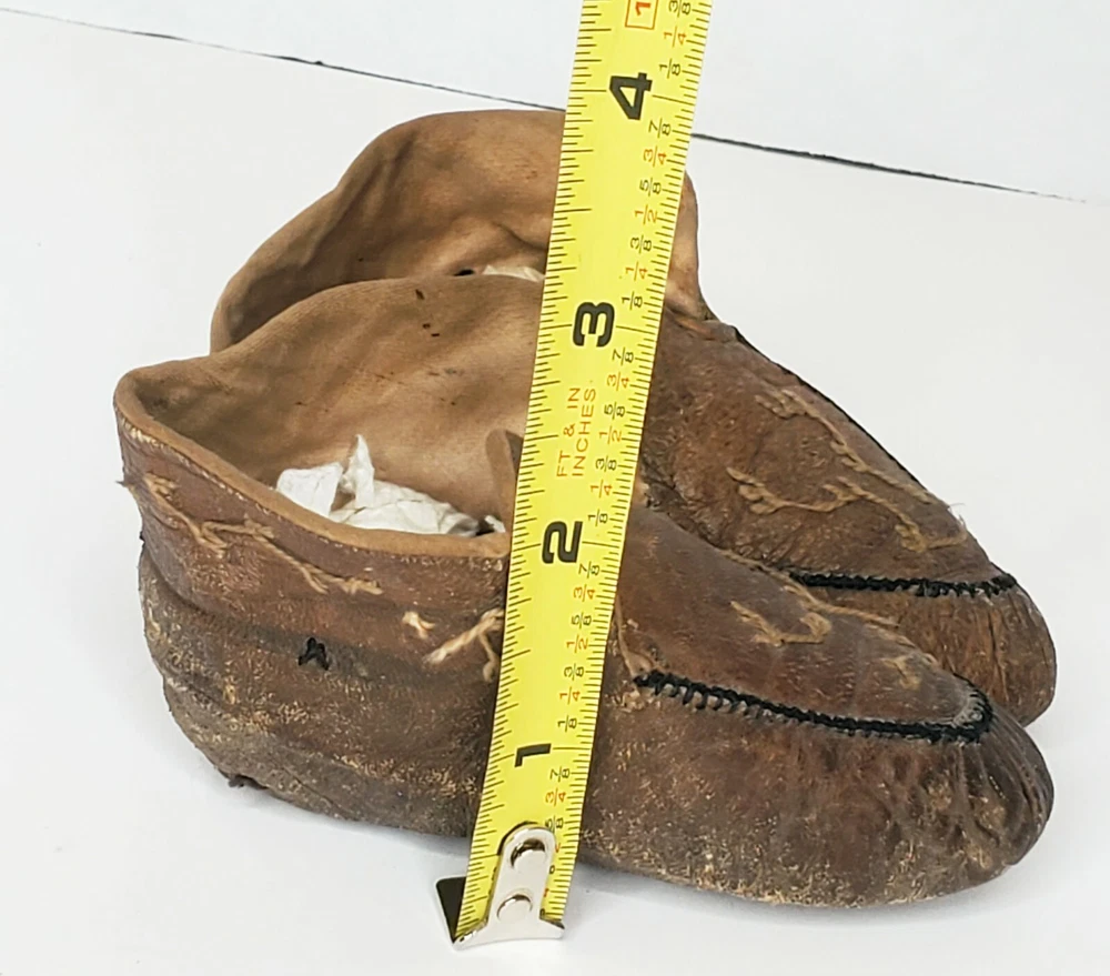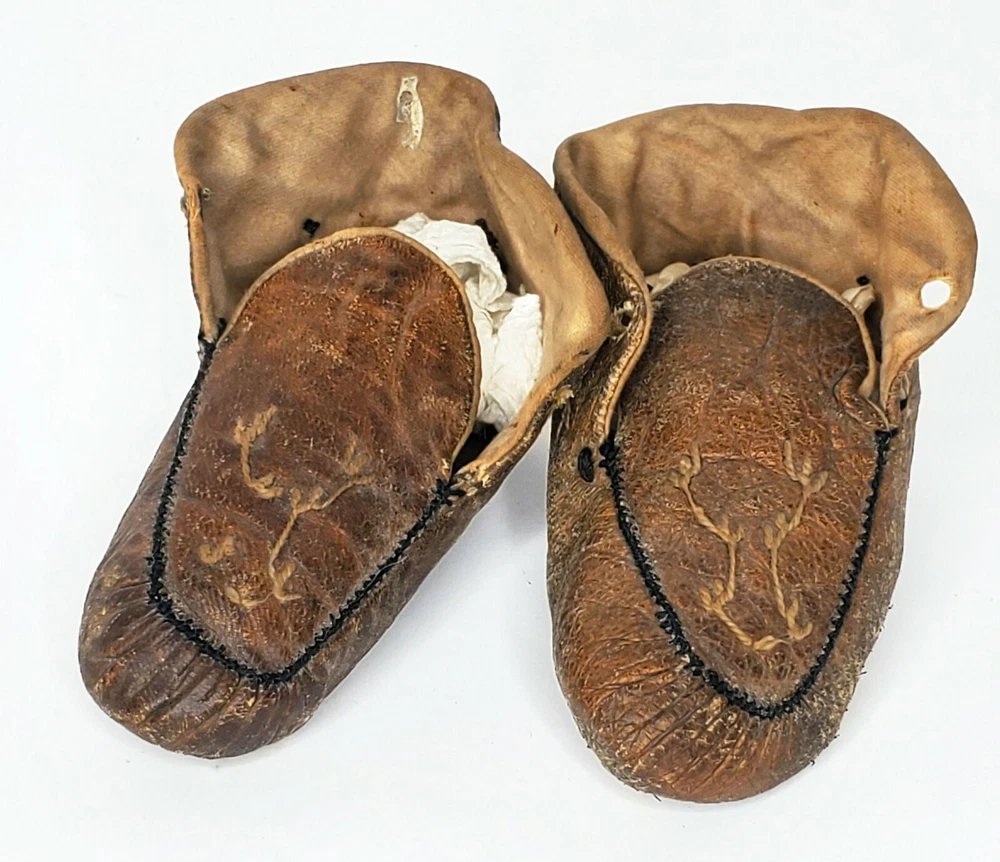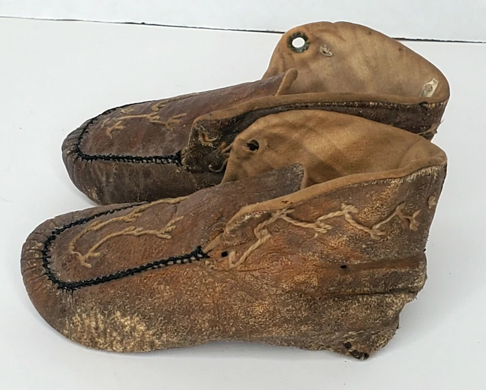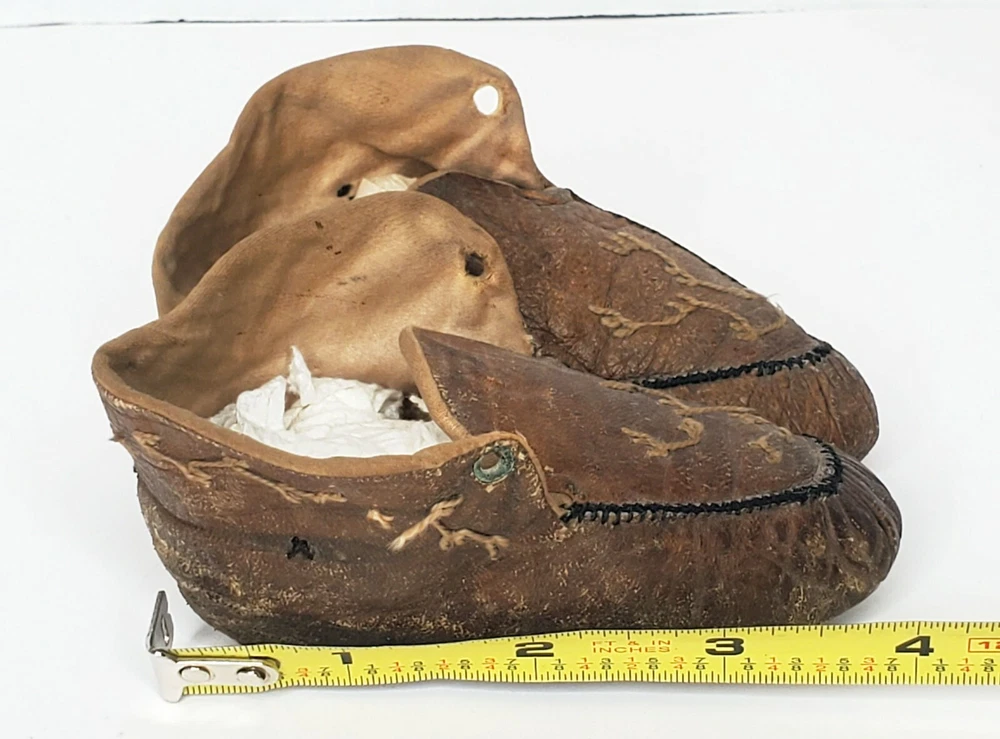 Vintage Antique Victorian Leather Baby Shoes Moccasins Very old. They belonged to my Aunt and she had them a very long time. I am not sure where she got them. As is. Please see photos No laces Note: This is a vintage item. Due to age, the item may have some flaws such as crazing, chips, minor cracks, marks, stains and other wear. I will try to disclose as much as I can. Please review pictures closely. 5-3087