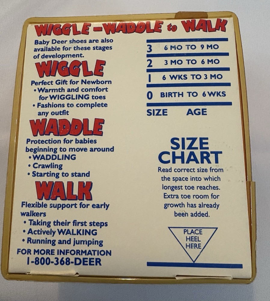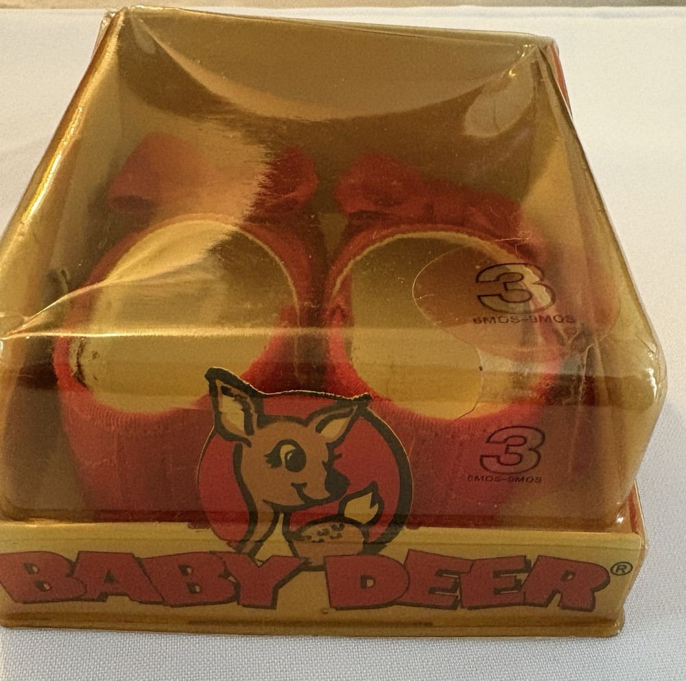 Add a nostalgic touch to your baby collection or gift a timeless piece of vintage charm! This pair of vintage Baby Deer crib shoes (style 5543) is new in box, size 3 (6–9 months), and features adorable red fabric Mary Janes with matching bows. Still in original plastic packaging with retail tags from Dillard’s. 🦌 Brand: Baby Deer 📦 Condition: New in original box (NIB) – box has light wear due to age 🎀 Size: 3 – fits 6 to 9 months (per manufacturer’s size chart) 🇺🇸 Made in the USA 👣 Wiggle • Waddle • Walk collection – perfect for early crawlers 🛍️ Style 5543 🛒 Suggested retail: $14 (vintage price tag still attached!) Great for vintage collectors, baby shower décor, photo props, or anyone who loves retro baby items!