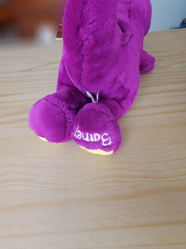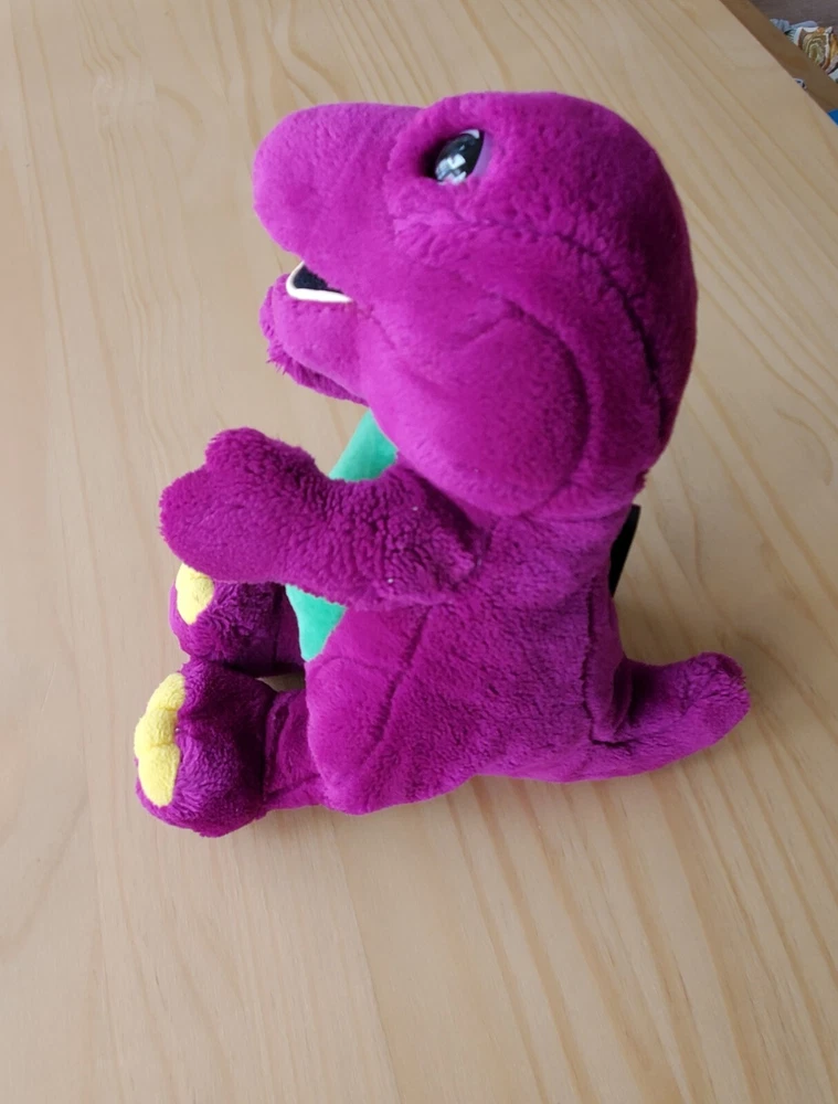 Used condition Barney stuffed animal. Smoke free home, No rips or tears, minor scratches on eyes (see pic).