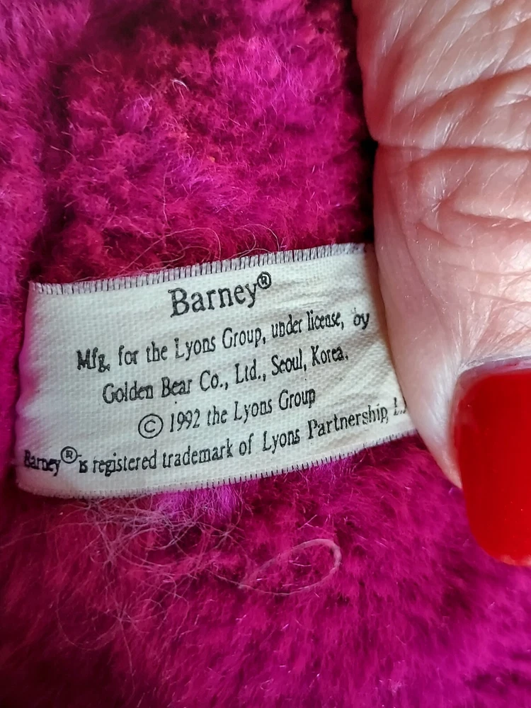 Size:Medium (14-24 in)Year:1992Country/Region of Manufacture:IndonesiaRecommended Age Range:Ages 2 And Upgtin13:Does not applyCharacter Family:Barney & FriendsAge Level:3-4 YearsBrand:The Lyons GroupUPC:Does not apply