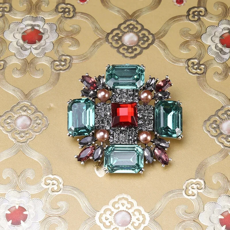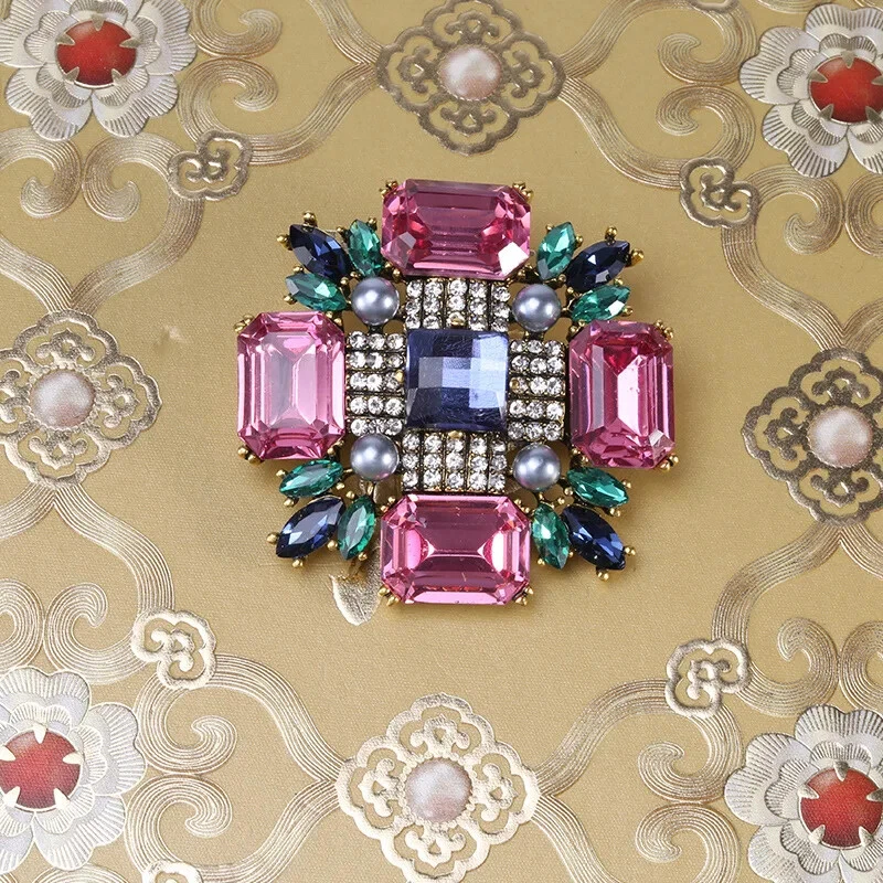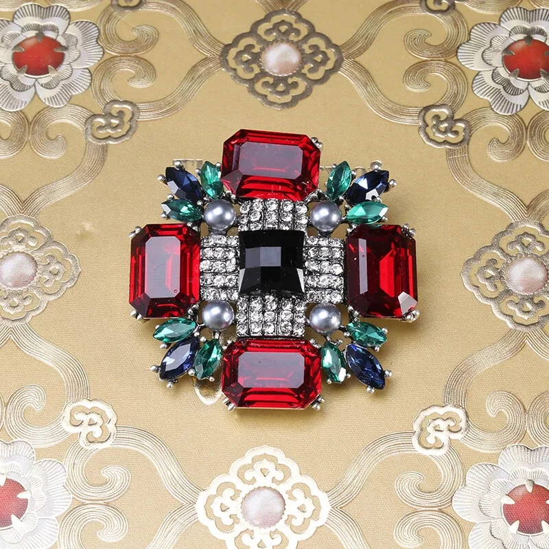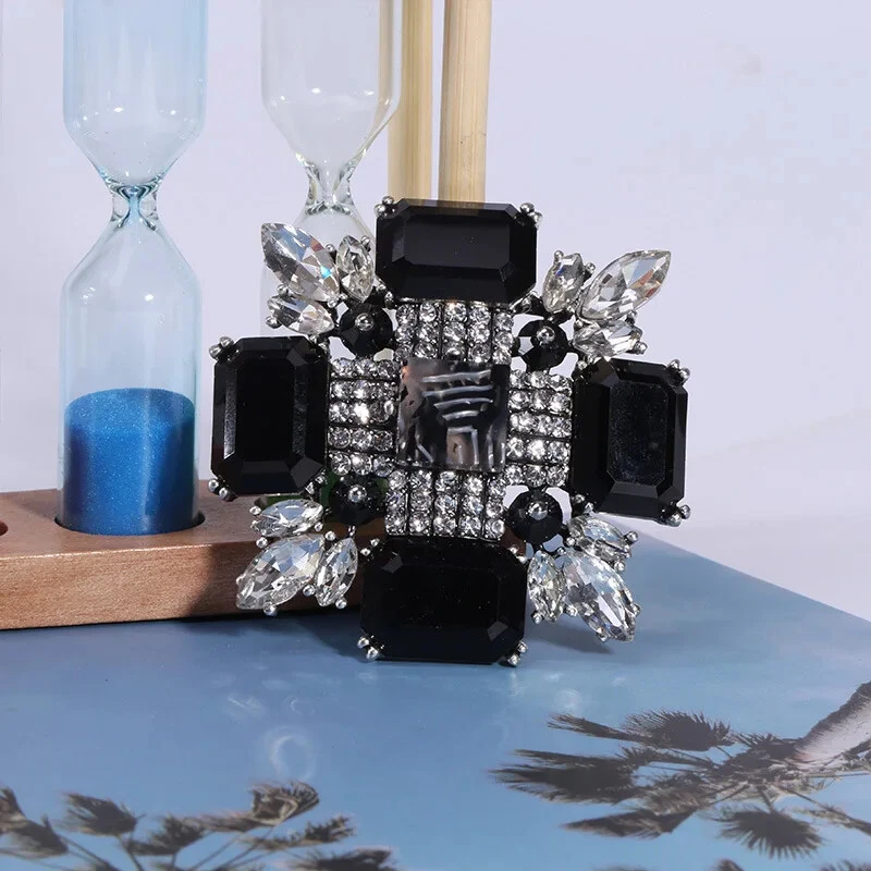 Vintage Baroque Crystal Cross Brooch Large Size Vintage Delicate Brooch Women