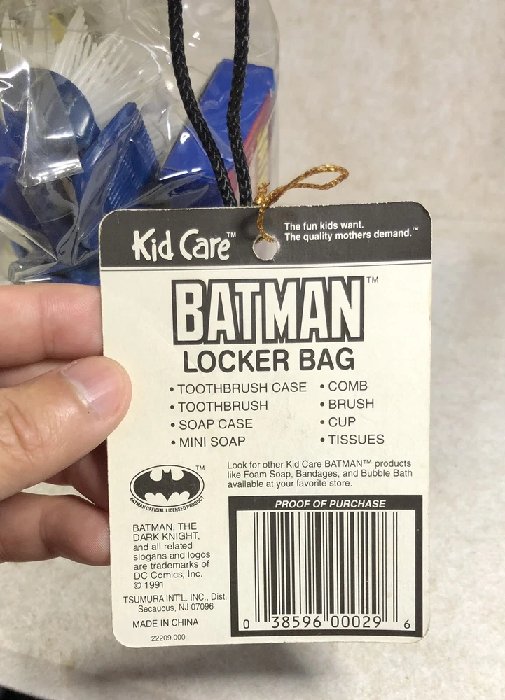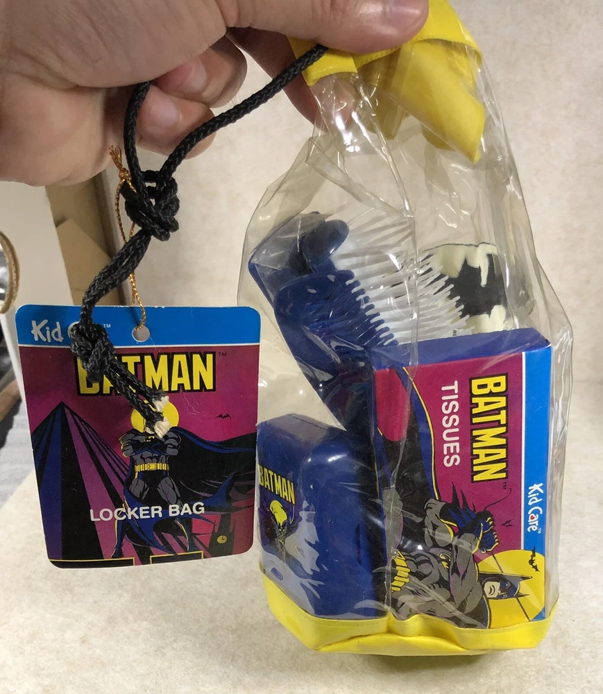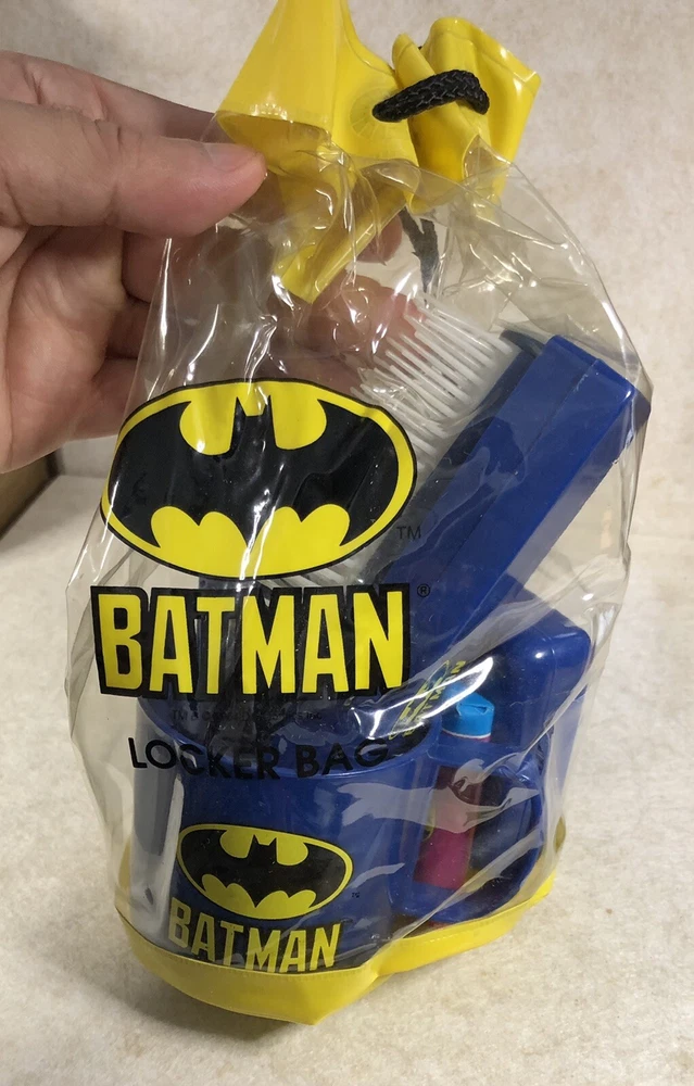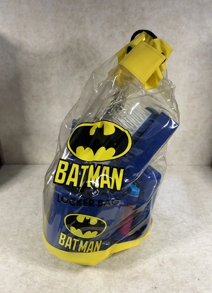Vintage Batman Kid Care Locker Bag with Seven Personal Care Items 1990's. Shipped with USPS Ground Advantage.