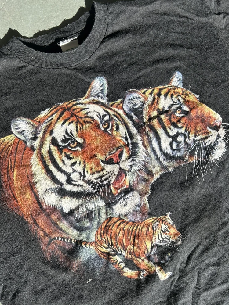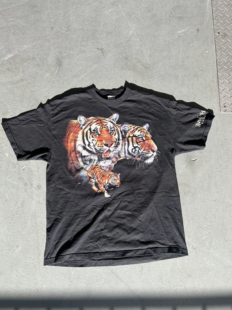 Black AAA tee - Rain Forrest Cafe - Image of 3 Bengal Tigers - Endangered Species Promo