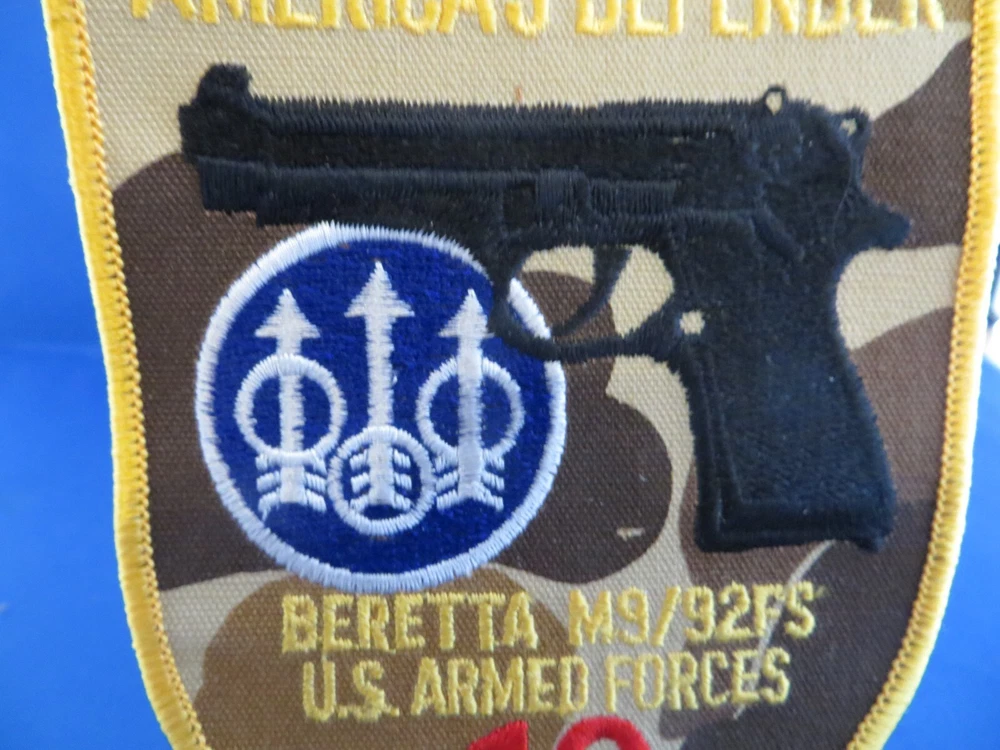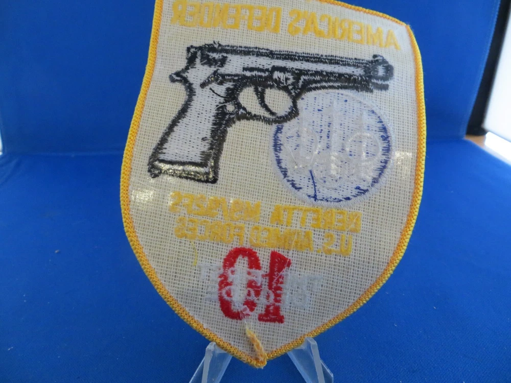 For your consideration is a vintage Beretta patch. Embroidered with a Beretta 92 and US Armed Forces. It measures 3 1/2 inches X 4 3/4 inches. Overall condition is excellent. What you see is what you get. I SHIP VIA UNITED STATES POST OFFICE AND PROVIDE DELIVERY CONFIRMATION NUMBER UPON SHIPPING, IF THIS IS A PROBLEM PLEASE ADVISE. I'm all about customer satisfaction so if there is a problem please contact me first. Insurance is not provided, so If you want your item insured please advise and I'll add it to your invoice. I leave feedback after feedback has been received. Purchases are to be paid for within seven (7) days. Thank you for looking and good luck.