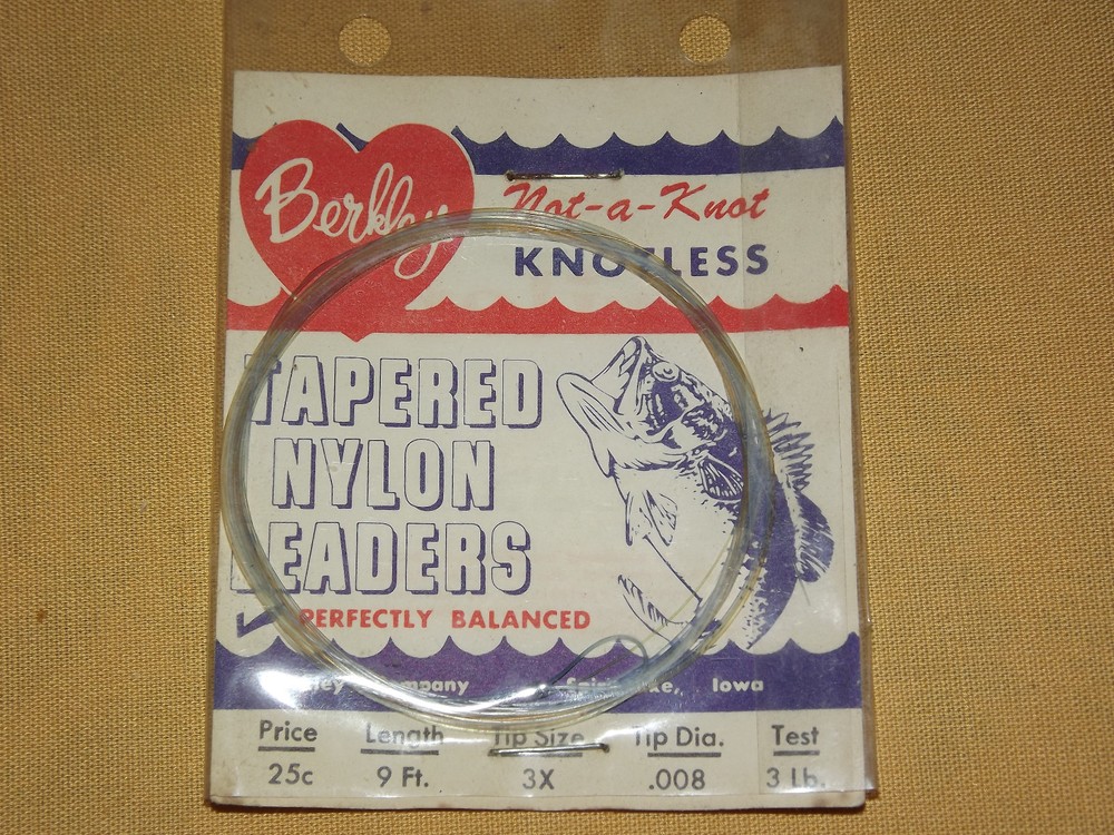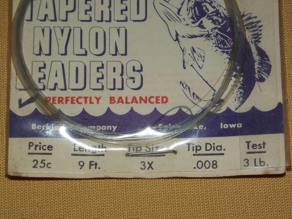 YOU ARE BIDDING ON...... VINTAGE FISHING LINE BERKLEY TAPERED NYLON LEADERS 3 LB TEST........... ..UNUSED SHOWS AGE DISCOLORATION/SOILING SPOTS....PLASTIC HAS TEARS.........PLEASE VIEW PHOTOS FOR CONDITION.***PLEASE E-MAIL IF YOU HAVE A QUESTION OR WANT AN ADDITIONAL PICTURE....PLEASE VISIT MY EBAY STORE FOR ADDITIONAL VINTAGE ITEMS..THANK YOU*** BX5505-11N-PLAS