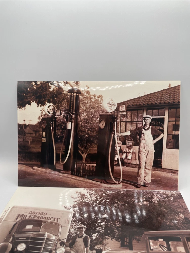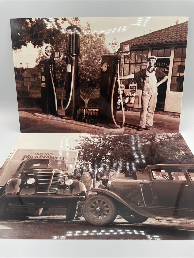 Vintage Black & White Gas Station Auto Film Photograph 12 X 8 In