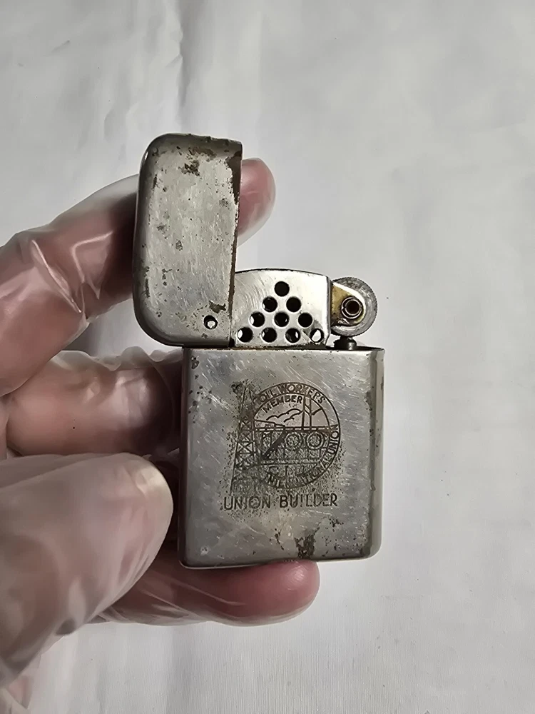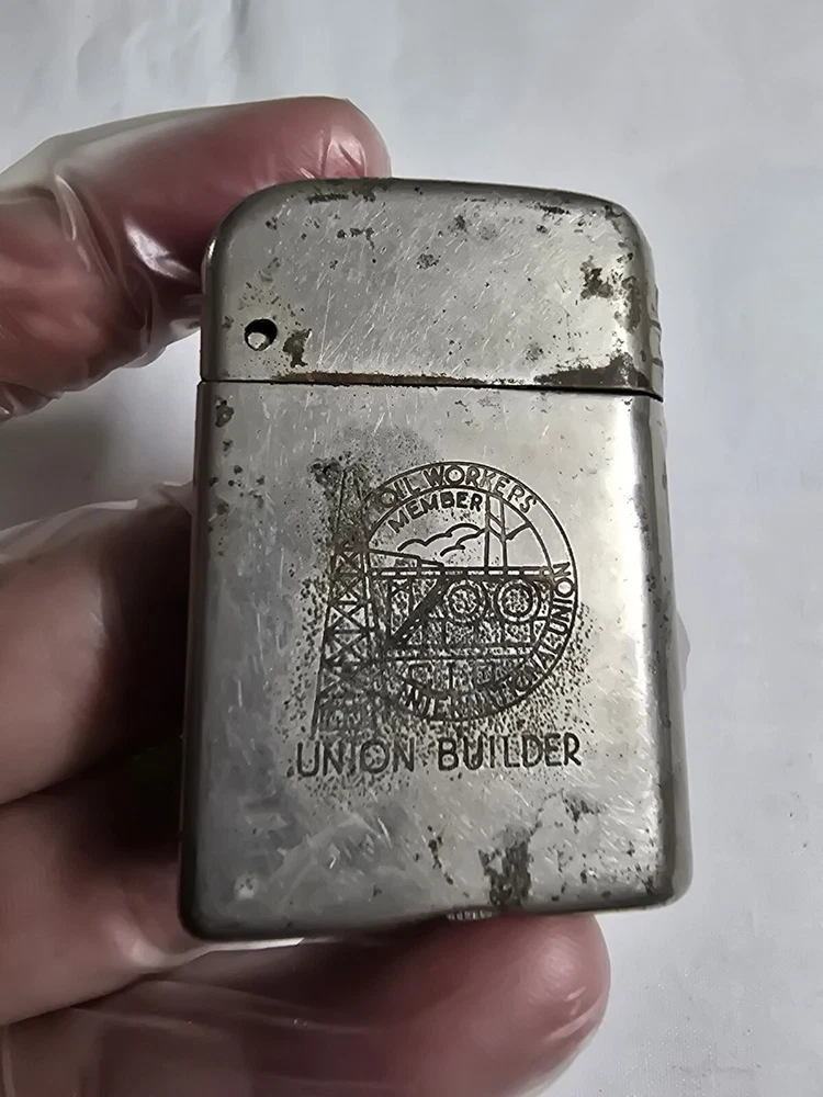 This vintage Bowers flip-top lighter is a rare find for any collector of tobacciana and oil industry memorabilia. The silver color and intricate details on the lighter make it a true gem. The brand, Bowers, is well-known for producing high-quality lighters, and this one is no exception. The lighter was designed with the Oil & Gas International Union in mind, making it a unique piece of history. Whether you're a collector or just looking for a conversation starter, this vintage Bowers flip-top lighter is sure to impress. Lighter still sparks. Lighter will need to be refueled before use. We'll combine shipping. If you are bidding or buying more than 1 item, please message us and let us know that you are still bidding or planning on buying more items. Please look at all the pictures. We took detailed pictures of the item. How the pictures look like is how the item will be shipped. Thank you for looking. Please be sure to check out my other items