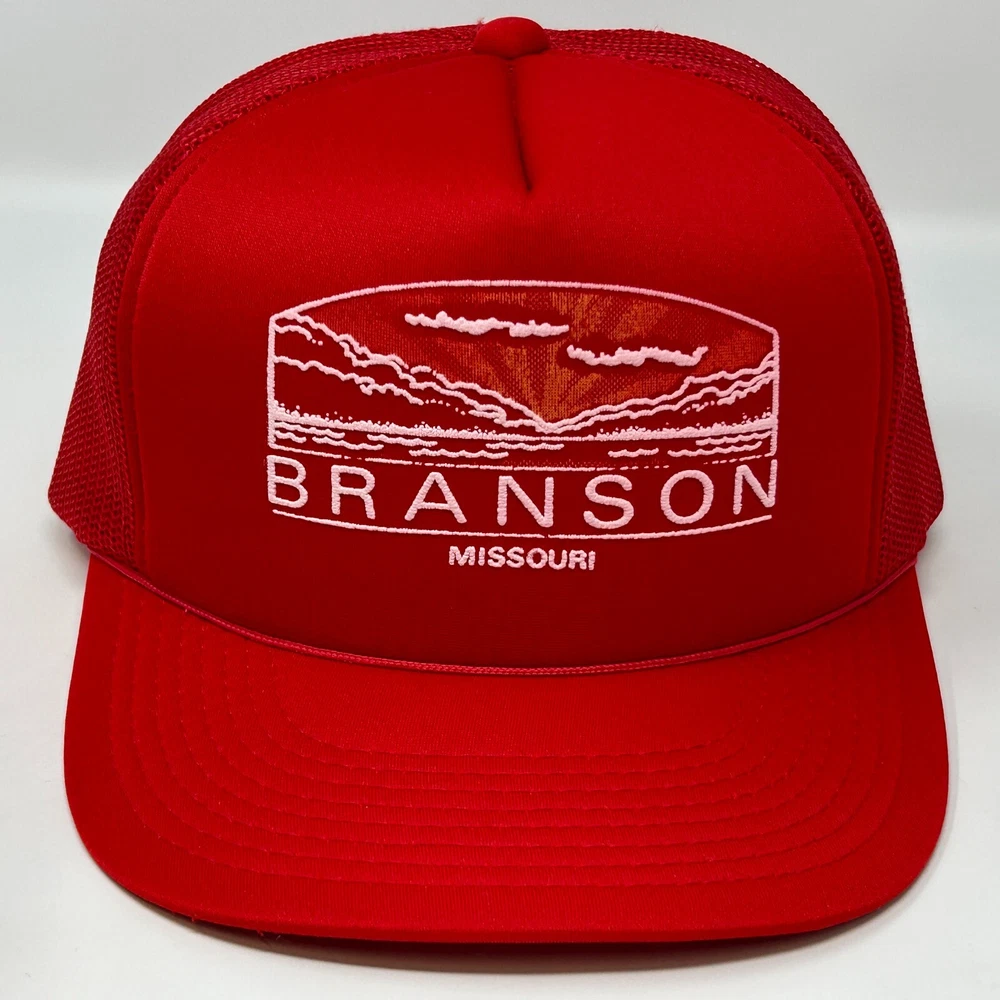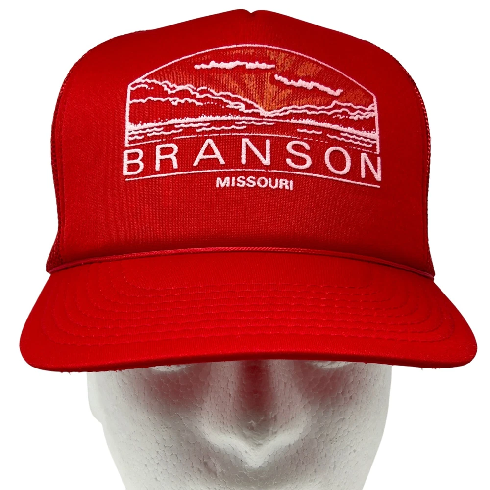 Vintage 80s 90s Branson Missouri Snapback Trucker Hat Tourist Tourism Red Five Panel Mesh YoungAn YA Headwear Baseball Cap Will be shipped in a box. Condition: In gently used condition. Looks unworn. No flaws noticed. See photos.