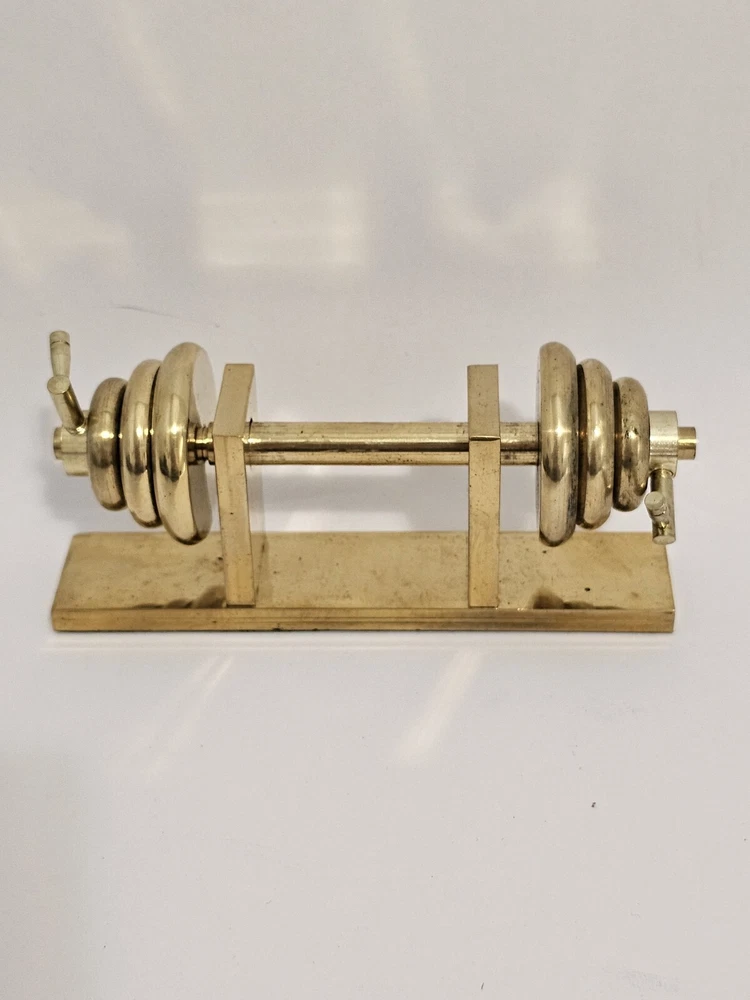 Vintage Brass Barbell Weight Set Paperweight Miniature SH2. Condition is Used. Shipped with USPS Ground Advantage.