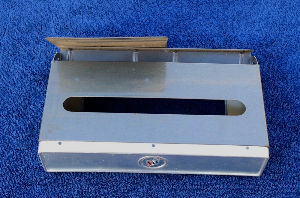 Buick Tissue Dispenser Nice Shape Not perfect - Chrome Face and Rest Of Dispenser Has Wear - Patina Swivel Up and Down Works 2 1/8" x 5 1/4" x 10 1/4" Please look at all pictures for details