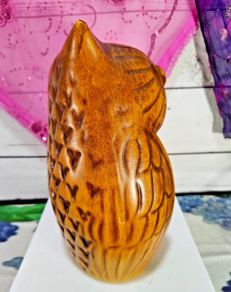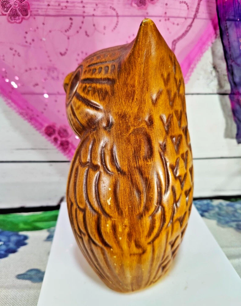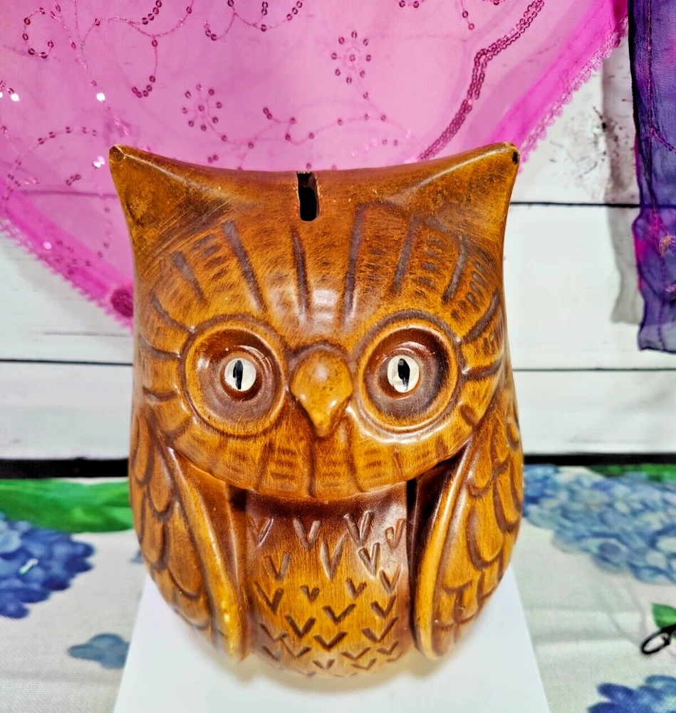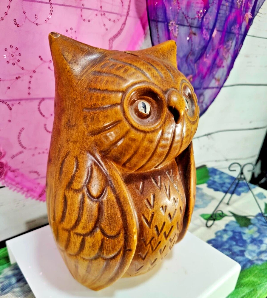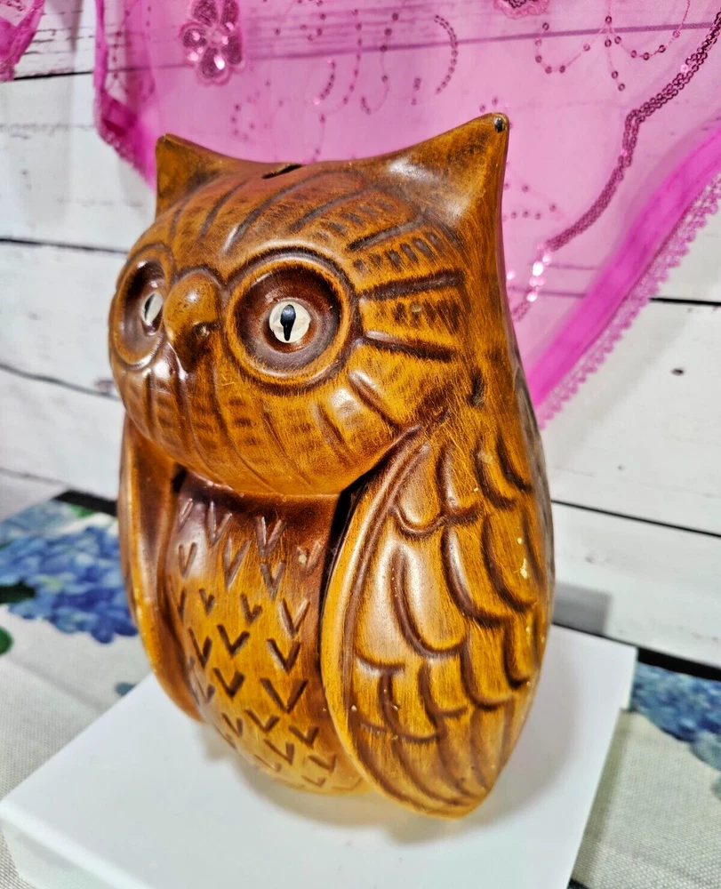 Crafted with care by California Pottery, this vintage hand-painted owl-shaped piggy bank is a charming addition to any collection or home decor. The pottery's rich history is evident in the intricate details and the vibrant hues that bring the owl's features to life, making it a standout piece. The piggy bank stands at 11 inches tall and showcases the artistry that originates from the United States. Although it is missing its stopper, the bank's unique design and the timeless appeal of its animal theme make it a delightful find for enthusiasts and decorators alike. Please be sure to carefully examine all photos. Feel free to ask questions and to submit offers. As always, Gertie and I thank you for your business. Be sure to follow us on eBay for upcoming promotions!