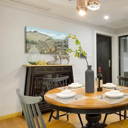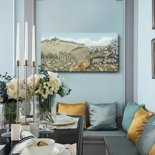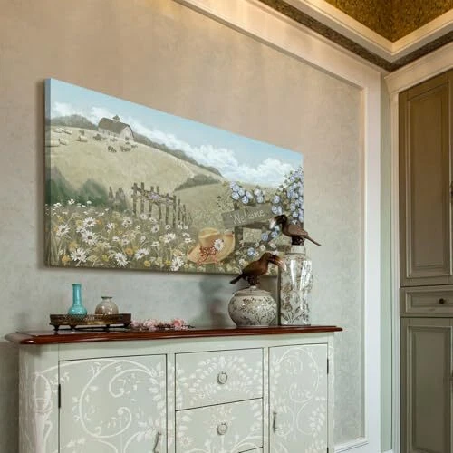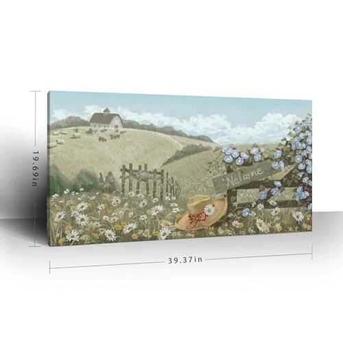 Return Policy Fast Delivery Trusted seller Vintage Canvas Wall Art for Living Room Blue Sky and Wildflowers Barn Picture Farm Cow Landscape Painting Village Nature Meadow Botanical Print Yellow White Daisy Floral Farmhouse Artwork 20x40inch Product Description Farm Natural Landscape:This canvas wall art brings a traditional floral subject to your walls with its collection of colorful flowers and dense meadow.It depicts a peaceful and relaxing country life,rustic barn and cows painting.It comes in vibrant yellows,purples,and greens hues set against a distant blue sky landscape,with a textured greens background to make this botanical wall art stand out wver you hang it Country Rural Scene Barn Picture:The vintage wall art printed on premium quality canvas using the fade-resistant ink.This farmhouse wall art shows a field of colorful wildflower blooms that bring a smile to your face when you walk into the room.With its charming countryside aesthetic,it complements traditional and modern farmhouse decor styles alike Lightweight and Ready to Hang:This bedroom wall art is gallery-wrapped,hand stretched by professionals,sending with two different kinds of nails as your choices.A single hook is affixed to the back wooden bar for hassle-free hanging right out of the box Perfect Wall Decor Idea:This farm canvas print brings a natural,floral feel to your bare walls in the living room,bedroom,kitchen,guest room and office.Different levels of paint make the whole picture vivid and can brighten the entire room.Great gifts for your relatives and friends Buy with Confidence:If any problems or concerns with this nature landscape wall art canvas, we are always for you.We are pursuing a good shopping experience for our customers by this flower wall art Shipping Returns Payment Shipping Shipping is FREE to all addresses other than APO/PO boxes in the lower 48 states. All our stock ships from US-based warehouses. Shipped via USPS or UPS (depending on location and package weight) Unless stated otherwise, all orders will ship within 24-72 hours of your payment being processed. Check our feedback to see the great reviews of FAST shipping we offer. Returns Seller does not accept returns Payment We currently accept payment via eBay managed payments only. Once payment is cleared, we will dispatch your shipment within 1-3 business days. Please refer to the "Shipping" tab for more information regarding shipping speed to your destination.