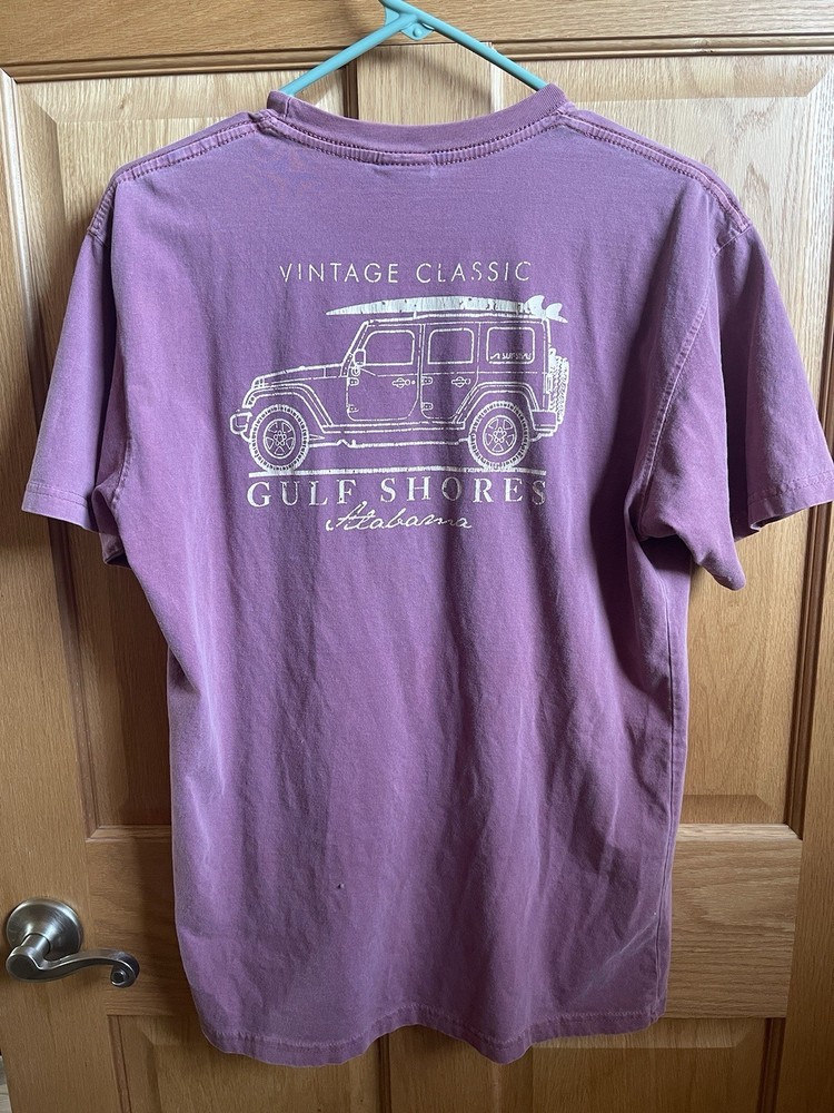 The Vintage Car Graphic T-Shirt is a classic piece perfect for any car enthusiast. Made from comfortable cotton material, this short sleeve shirt features a crew neck and a regular fit. The pink color and vintage design make it a stylish choice for the summer and spring seasons. Machine washable and with a unisex design, this shirt is a great addition to any wardrobe for fans of classic cars. Made in the United States, this Gildan 5000 product is a must-have for anyone looking for a timeless and unique t-shirt. Measurements Pit to pit 19 inches Length 28 inches