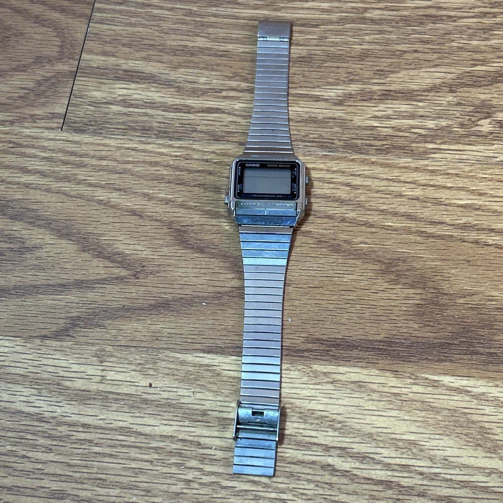 This vintage Casio DB-500 TELEMEMO 50 DATA BANK watch is a rare find for watch collectors and enthusiasts. Made in Japan, this wristwatch features a digital display, quartz movement, and a two-piece strap. The silver bezel color, Arabic numerals, and luminous dial make for a classic and sporty look. This Casio Databank model comes with a variety of features such as a date indicator, day/night indicator, world time, and a chronometer. It is also water-resistant, has a mineral crystal, and an easy-to-read large numeral display. Although it needs a battery, this limited edition watch is in great condition and is a must-have for any watch lover. need a new battery Does not include box or some other accessories ONLY comes with what's pictured. Please review pictures prior to purchase. We apprecdiate all business and would recommend sending a message if any issue or concern comes up. Thanks!”