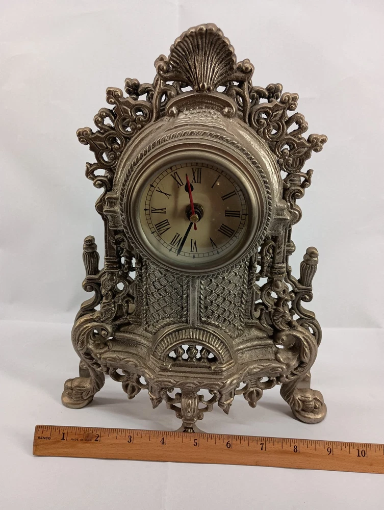 This vintage mantle clock features a Victorian style design and is made of cast metal. The intricate details and ornate embellishments typical of Victorian decor are showcased in this elegant timepiece. Perfect for adding a touch of antique charm to any mantel or shelf, this clock exudes a sense of nostalgia and sophistication. Its classic design and craftsmanship make it a desirable collectible for those who appreciate vintage and period pieces. I put a battery in this clock and it worked for a few minutes and stopped , I rolled the battery in its housing and it started working again, and again after several minutes it stopped. So this clock is going to need a little love to operate correctly. This clock is being sold AS IS Thank you for visiting my listing today and thank you for your interest in this item! My goal is to have a pleasant transaction resulting in a satisfied customer. I hope any transaction between us leaves you with a feeling of confidence knowing you can trust me and the items I offer here. *Most if not all my listings are set to accept offers. Feel free to send an offer and I will be happy to consider it!! *Please contact me with any questions or concerns and I will be happy to help. *Always examine the photos carefully, and if in doubt, email me with any questions you may have. *Please note that condition statements are offered as a guide only. They will always be somewhat subjective and reflect our opinion, which may not necessarily agree with someone else's opinion. PLEASE READ: I aim to please and I want my buyers to have a positive transaction with me. If you have questions, concerns, or special requests related to any of my items I hope you will contact me so we can work them out to your satisfaction. I sell my items to give you a great item at a decent price while making a little profit at the same time. If you feel the item you are interested in is too pricey do not hesitate to send me a fair offer and I will consider it. My goal is to satisfy your needs and mine so both parties can benefit. SHIPPING: If you prefer a different shipping method or company please contact me and I will do all I can to make that happen. If you have concerns or requests about the packaging of your item contact me and I will do all I can to accommodate them. Shipping costs are based on location in each state or country, the costs always differ. After I have received your payment I will ship your item out within 3 business days or less excluding weekends and holidays. BEFORE PURCHASING & BIDDING: **Please see all the pictures. I do not have great photography skills but I try to get the most accurate photos I can. If you are unsure about something you see in a photo contact me so I can do what I am able to answer your concern about the item. **I cannot stress enough that if you have any questions or concerns please contact me before purchasing and bidding. Communication can solve so much. **As a customer myself, I understand the meaning of customer satisfaction and my goal is to have nothing but satisfied customers. If you are not unsatisfied with your purchase I ask that you please contact me so I can take care of your issue. My goal is for you to be 100% satisfied. INTERNATIONAL BUYERS WELCOMED - PLEASE NOTE: I welcome International buyers! Please be aware that any custom/duties/taxes that the parcel might incur once it is out of the USA are the responsibility of the buyer. Please check with your country's customs office to determine what these additional costs will be prior to bidding or buying. Please refer to the eBay Site Map for more information if needed.