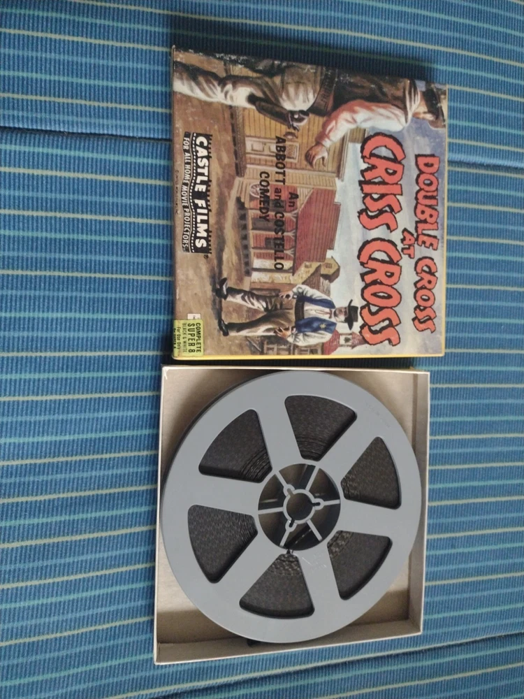 VINTAGE Castle Film #854 WRONG WAY WILLIE DOUBLE CROSS AT CRISS CROSS An Abbott & Costello Comedy Super 8 Film Pre-owned, film and box in great condition, vintage super 8 film collectible, Abbott and Costello collectible