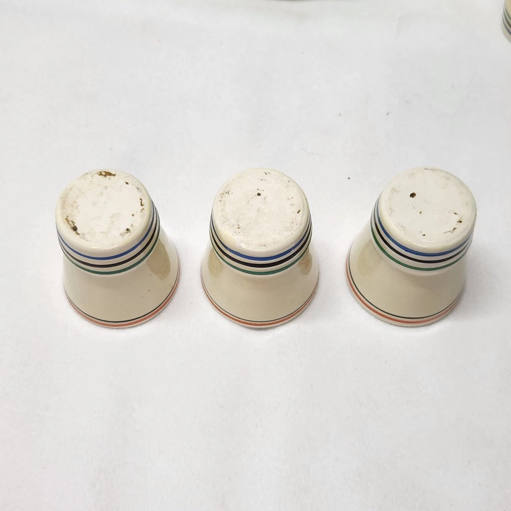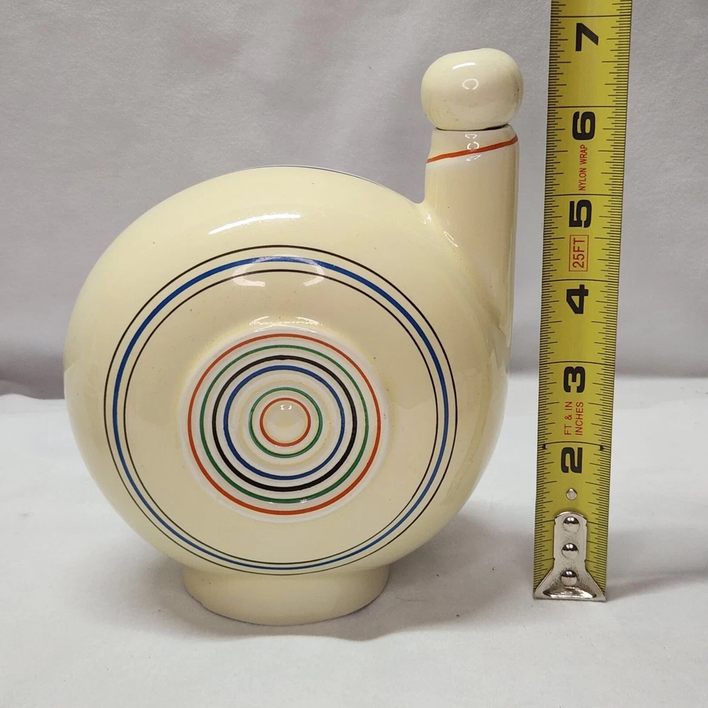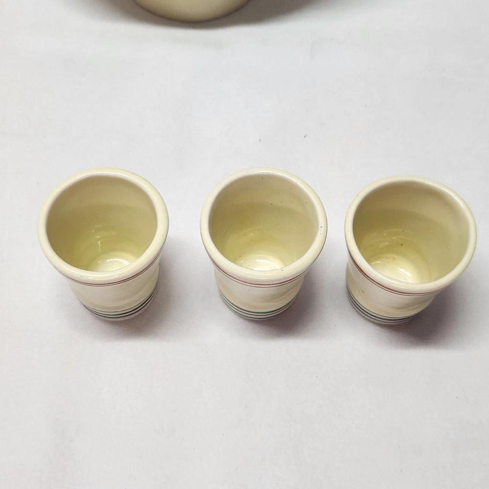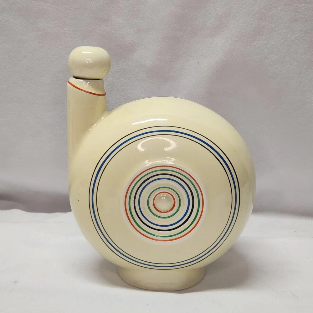 This vintage ceramic liquor decanter set is a must-have for any barware collector. The set includes a decanter, shot glass, and a lid/stopper, all of which are beautifully crafted with a circular pattern in multicolor. The set is made of ceramic and porcelain, and has a mid-century modernism style that adds a touch of elegance to any bar. The set is an original and comes with a cover included. It is recommended to hand wash only to maintain its quality. The decanter set is perfect for serving liquor, sake, whiskey, or tequila, and is sure to impress your guests. Bar ware Sake decanter Whiskey decanter Tequila decanter Shot glasses Item will be shipped promptly and packaged with care.