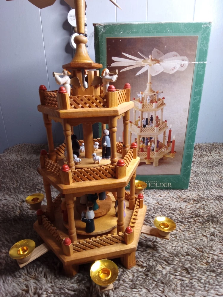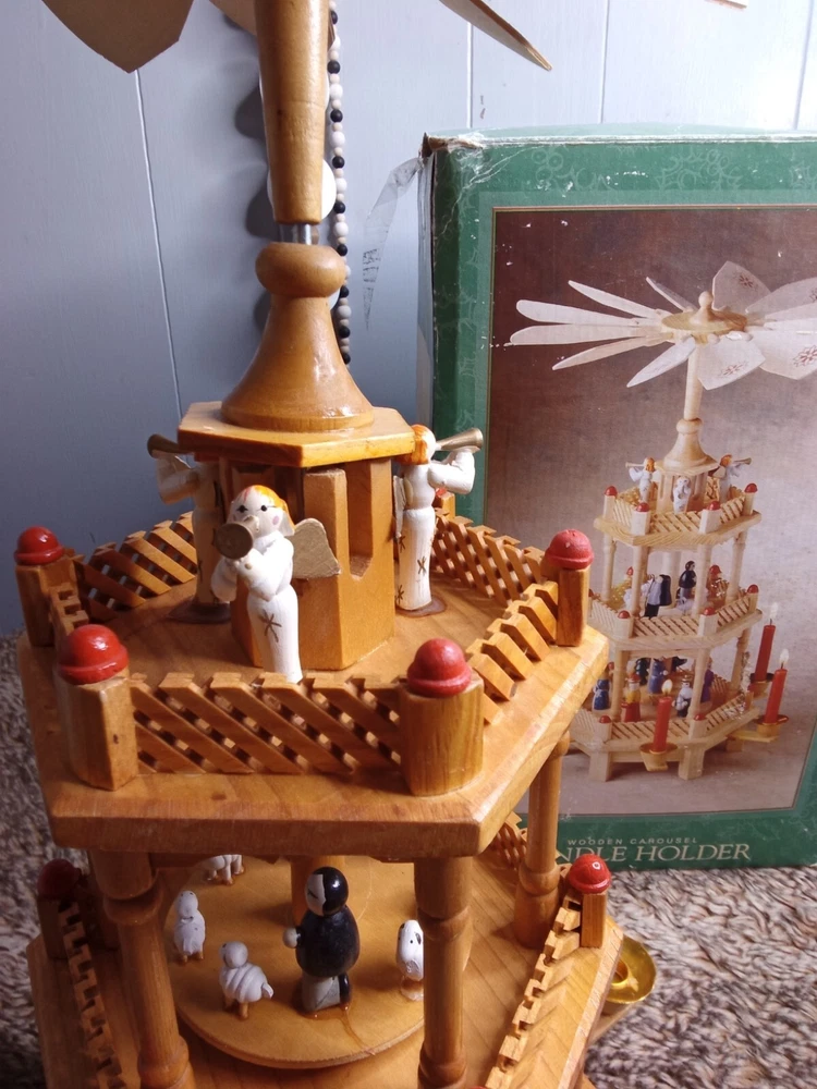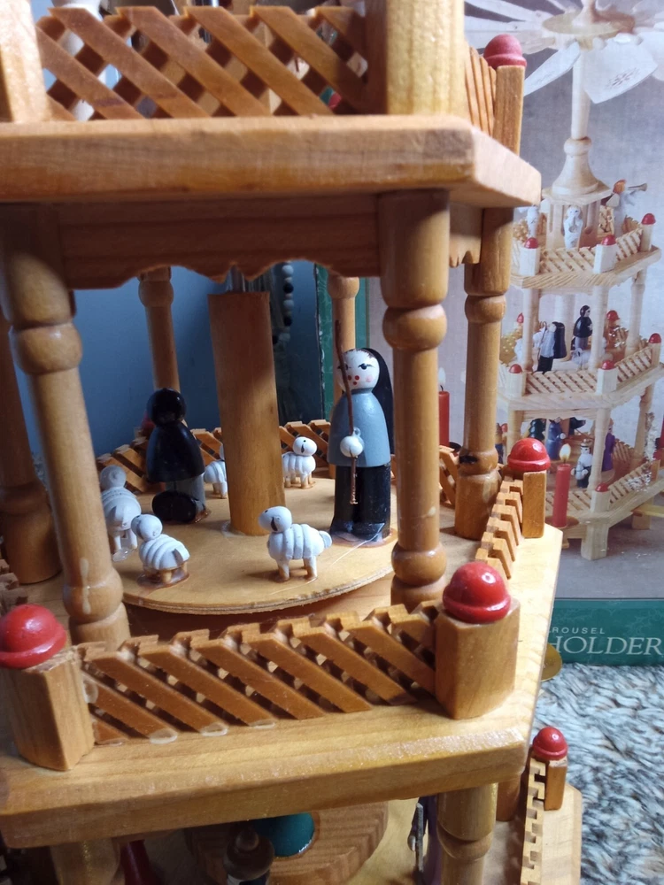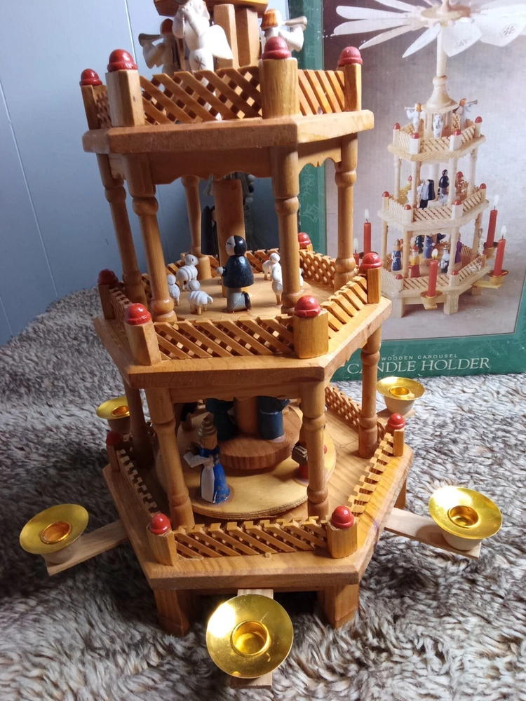 Vintage Christmas Nativity Carousel Candle Holder Wooden 547/170 In Box 18.5"