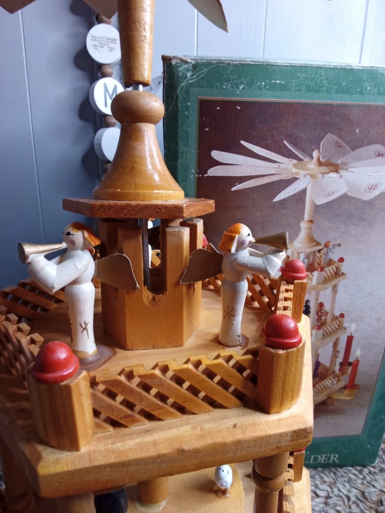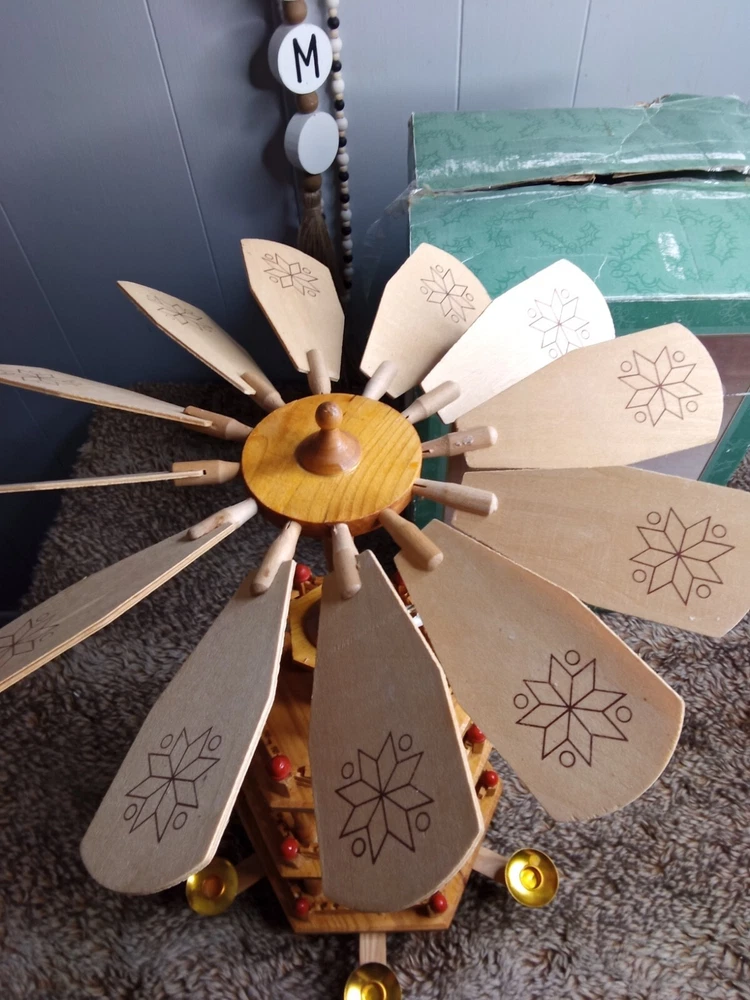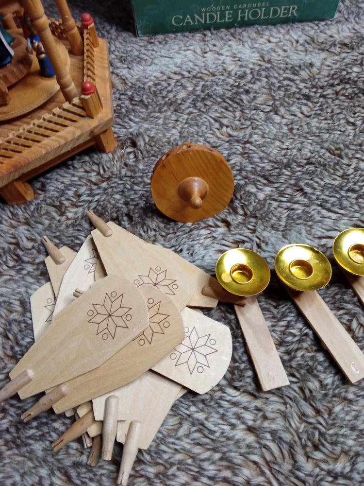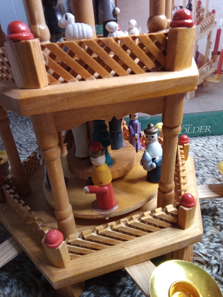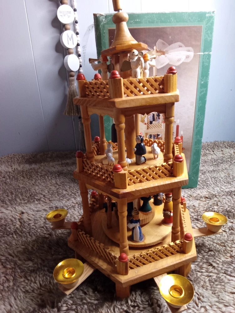 Vintage Christmas Nativity Carousel Candle Holder Wooden 547/170 In Box 18.5"