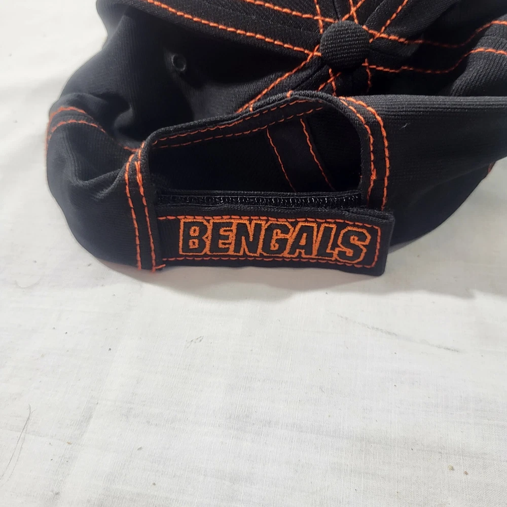Show your support for the Cincinnati Bengals with this vintage NFL headwear. The black canvas fabric, adjustable for a comfortable fit, makes this cap perfect for any casual occasion. The solid pattern and fitted features give it a 90s sports vibe, while the California Prop 65 Warning ensures safety. This one size adjustable baseball cap is perfect for any fan of the Cincinnati Bengals, and is not signed or personalized. Made in Bangladesh, this cap is a great addition to any sports-themed collection. Suitable for all seasons, it's a must-have for any true fan.