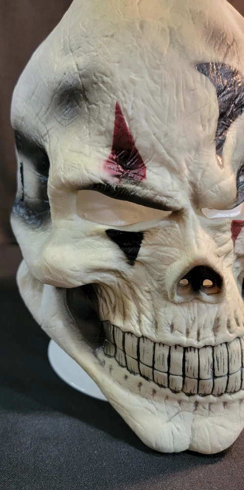 Get ready for a spooky Halloween with this vintage clown skull joker skeleton face mask. Made of high-quality latex material, this mask ensures a comfortable and secure fit for adult unisex wearers. The multi-color design and skull skeleton theme make it perfect for any creepy Halloween scare occasion. This one-size mask is manufactured in China and features an elastic band for easy wearing and removal. Its style is perfect for those who love face masks, and it is suitable for any Halloween costume. Make a statement with this unique and scary mask, perfect for any haunted house or Halloween party. See pictures for details