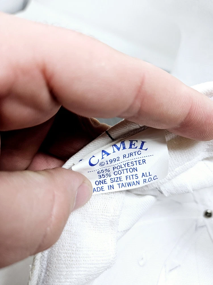 Brand: Camel Country/Region of Manufacture: Taiwan Department: Men Fabric Type: Canvas Features: Adjustable, Breathable Size: One Size Occasion: Casual, Workwear Style: Snapback Theme: 90s Material: Cotton, Polyester Character: Camel Vintage: Yes Pattern: Striped Color: White