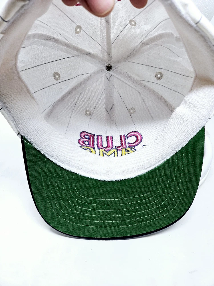 Vintage Club Member Camel Tobacco Striped Snapback Hat Embroidered Green Bill