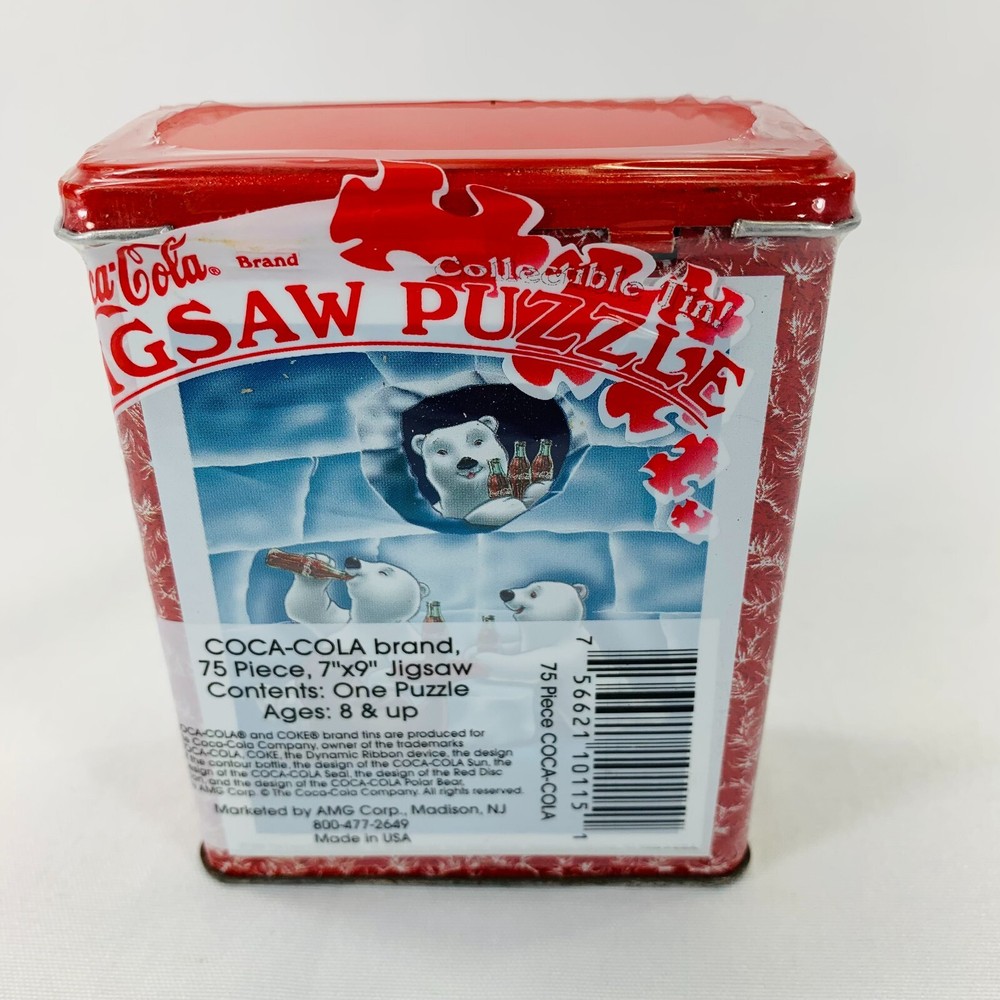 This vintage Coca-Cola jigsaw puzzle is a must-have for any collector or fan of the iconic brand. With 75 pieces, this puzzle features a colorful and eye-catching design that showcases the classic Coca-Cola logo and theme. The puzzle comes in a collectible tin that adds to its value and appeal. Created in 1999 and made in the United States, this original piece of advertising memorabilia is a rare find. Perfect for puzzle enthusiasts and Coca-Cola enthusiasts alike, this puzzle is sure to be a conversation starter and a cherished addition to any collection. Don't miss your chance to own this piece of soda history. IF there are any imperfections, they will be shown in photos. We are a smoke-free & pet-free home! 💙Retro&Beyond