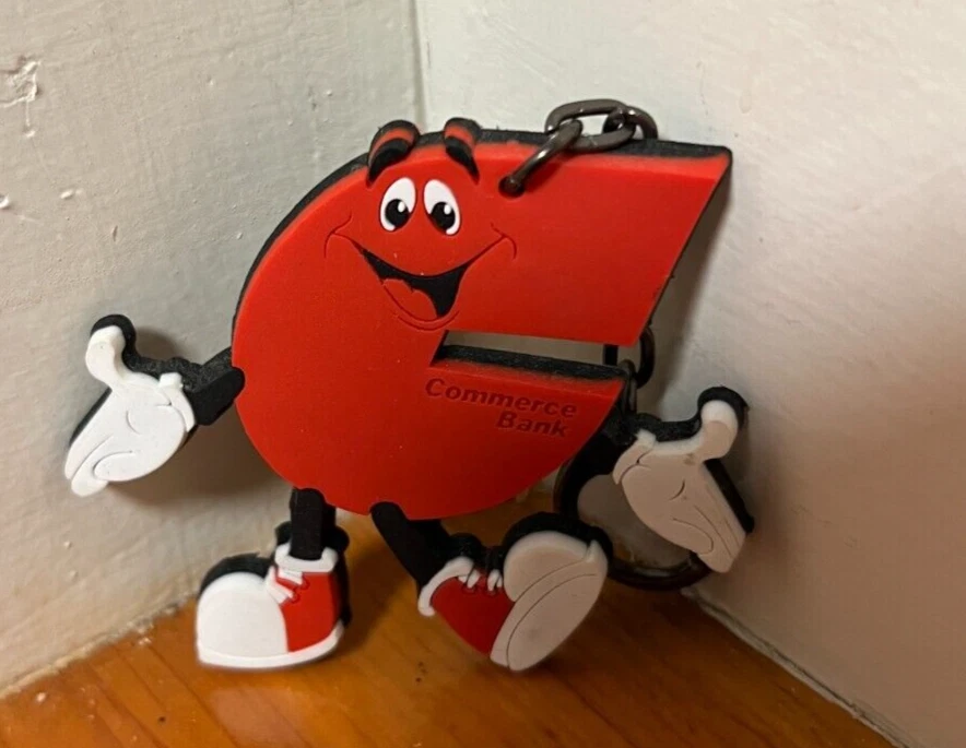 vintage Commerce Bank Mascot key chain measures from top of C to bottom 2 1/2" free shipping from my key chain collection